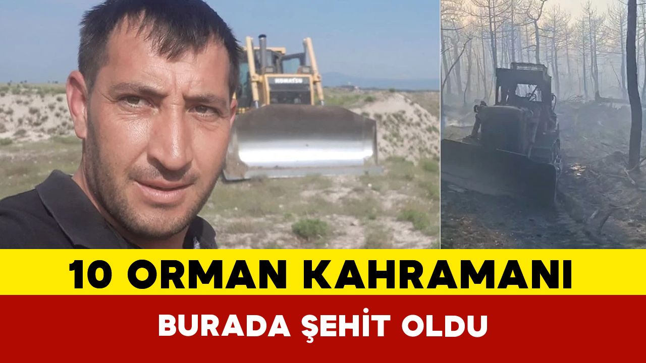 Eskişehir’in Seyitgazi ilçesinde çıkan orman yangınında dozer operatörü Eyüp Dereli, 10 kişiyle birlikte alevlerin içinde kalarak şehit olmuştu. Dün cenaze namazları kılınan şehitler son yolculuklarına uğurlanmıştı. Eyüp Dereli’nin şehit olmadan dakikalar önce kullandığı iş makinası görüntülendi. Küle dönen ormanlık alanda adeta demir yığını kalan iş makinasının durumu yangının büyüklüğünü bir kez daha gözler önüne seriyor.