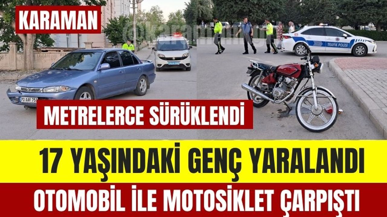 Kaza, akşam saatlerinde Ahmet Yesevi Mahallesi 833. Sokak’ta meydana geldi. Edinilen bilgiye göre, M.M. (17) yönetimindeki 70 FN 737 plakalı motosiklet ile H.B. idaresindeki 70 AAF 750 plakalı Proton marka otomobil çarpıştı. Çarpışmanın etkisiyle motosiklet metrelerce sürüklendi. İhbar üzerine olay yerine sağlık ve polis ekibi sevk edildi. Kazada yaralanan motosiklet sürücüsü ambulansla Karaman Eğitim ve Araştırma Hastanesi’ne kaldırıldı.