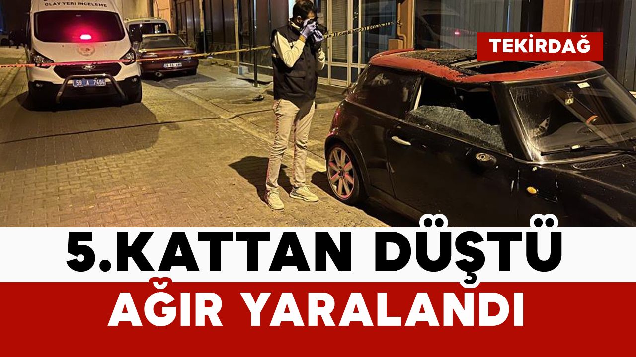 Olay, gece yarısı 01.15 sıralarında Kemalettin Mahallesi Menekşe Sokak üzerinde meydana geldi. 25 yaşındaki İ.C.Ö., iddiaya göre, binanın 5. katından park halindeki bir otomobilin tavanına düştü. Görenlerin ihbarı üzerine olay yerine ekipler sevk edildi. Ağır yaralanan genç adam, olay yerine gelen sağlık ekiplerinin ilk müdahalesinin ardından ambulansla Çorlu Devlet Hastanesi'ne kaldırılarak tedavi altına alındı. İ.C.Ö.'nün yoğun bakımda tedavisinin devam ettiği öğrenildi.