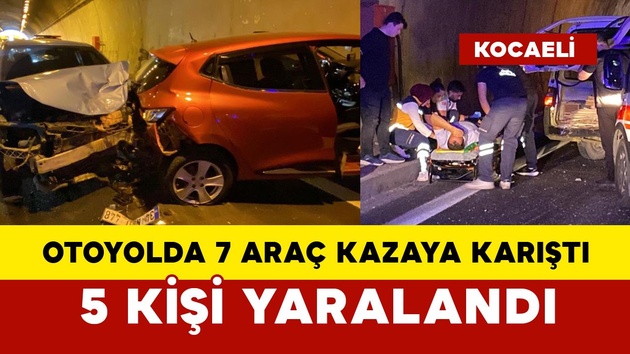 Kaza, İzmit ilçesi TEM Otoyolu İstanbul istikameti Gültepe Tüneli'nde meydana geldi. Edinilen bilgiye göre; minibüs, panelvan, hafif ticari araç ve 2 otomobil olmak üzere toplam 5 araç zincirlemeye kazaya karıştı. Kazanın hemen ardından yavaşlayan trafik sebebiyle 100 metre geride 2 otomobil de çarpıştı. Meydana gelen kazalarda 5 kişi yaralandı. Kazayı gören vatandaşların ihbarı üzerine olay yerine sağlık ve jandarma ekipleri sevk edildi. Kısa sürede olay yerine gelen sağlık ekipleri, yaralanan 5 kişiyi ilk müdahalenin ardından hastaneye kaldırdı. Kaza sebebiyle trafik tek şeritten verilmeye başlandı. Kaza yapan araçların yoldan kaldırılma çalışmaları devam ediyor. Kazayla ilgili inceleme başlatıldı.
