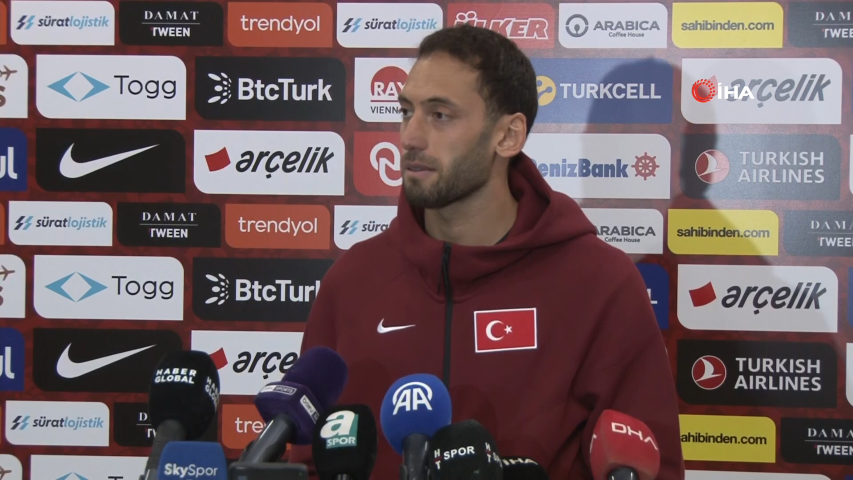 Teknik Direktör Vincenzo Montella’nın Romanya maçının kolay geçmeyeceğini kendilerine söylediğini hatırlatan Çalhanoğlu, "Herkesin beklentisi 3-0, 4-0’dı ama öyle bir maç olmayacağını biz de biliyorduk. Romanya Milli Takımı iyi bir takım. Eski hocamız orada çalışıyor. Her oyuncuyu tanıyor. Sabırlıydık, oyunun kontrolü her zaman bizdeydi. Takım motive, çok pozitif. Soyunma odasındaki durum da çok güzel her zamanki gibi. Zaten çoğu şeyi görüyorsunuz, aynı şekilde devam ediyor. Bu mutluluğu kaybetmek istemiyoruz. Devamını yaşatmak istiyoruz hem kendimize hem milletimize" şeklinde konuştu. Hakan, ‘Play-off finalinde hangi takımı rakip olarak görmek istersin?’ sorusuna da, "Hangi rakip olursa olsun önemli değil. Önemli olan o finale iyi hazırlanmak" cevabını verdi.