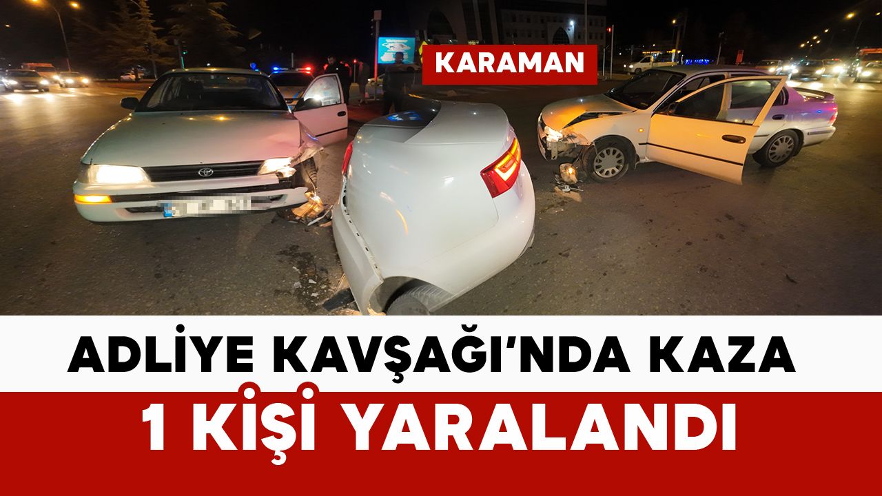 Kaza, akşam saat 19.00 sıralarında Hamidiye Mahallesi 100. Yıl Bulvarı üzerinde bulunan Adliye Kavşağı’nda meydana geldi. Edinilen bilgiye göre, E.D. yönetimindeki 34 D* 21*3 plakalı Audi marka otomobil ile M.G. idaresindeki 70 A* 9*3 plakalı Toyota marka otomobil kavşakta çarpıştı. Kazada, Toyota marka otomobilde bulunan sürücü M.G.'nin eşi yaralandı. İhbar üzerine olay yerine sağlık ve polis ekipleri sevk edildi. Yaralı şahıs, olay yerinde yapılan ilk müdahalesinin ardından ambulansla Karaman Eğitim ve Araştırma Hastanesi’ne kaldırılarak tedavi altına alındı. Yaralının sağlık durumunun iyi olduğu öğrenildi.