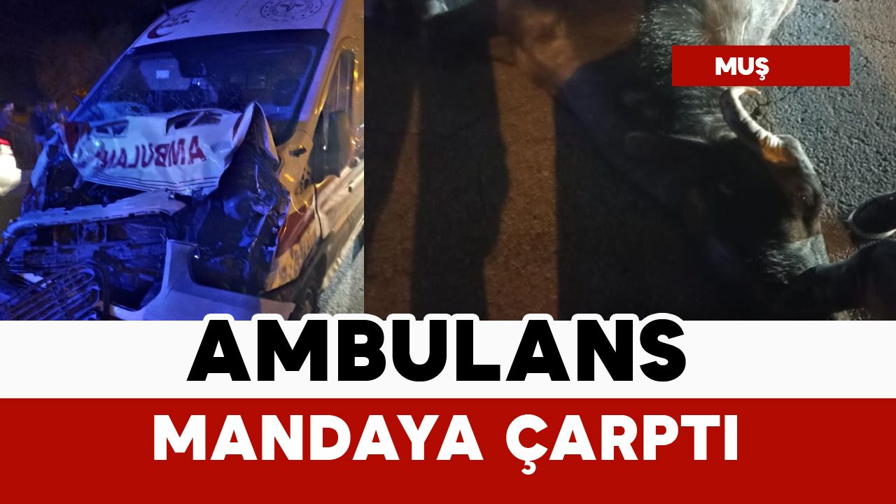 Kaza, Muş-Bitlis karayolu Güroymak ilçe girişinde yaşandı. Edinilen bilgilere göre, Muş Devlet Hastanesi’nden aldığı hastayı Van’daki bir hastaneye götüren 49 DA 112 plakalı ambulans, aniden yola çıkan mandaya çarptı.