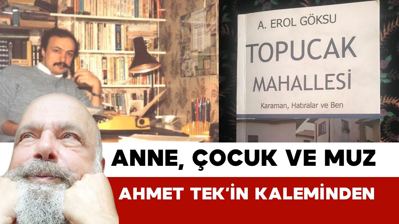 A. Erol Göksu, Cumhuriyet İlkokulundan sınıf arkadaşım. İlkokuldan sonra hiç yüz yüze gelmedik. Bana son eserini göndermiş. Üç yüz altmış sayfalık bir kitap. Kitapta, Karaman’ın kaderine terk edilen bir mahallesi, mazisine sahip çıkamayan bir şehrin ortada bırakılmış cenazesini anımsatan “Topucak Mahallesi” merkeze alınmış.