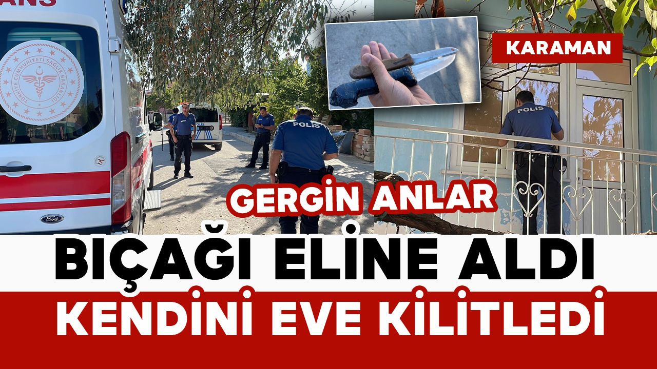 Olay, sabah saatlerinde Hürriyet Mahallesi 1534. Sokak üzerindeki 2 katlı evin giriş katında yaşandı. İddiaya göre, annesiyle tartışan A.G. (17) isimli genç eline aldığı bıçakla kendisini eve kilitledi. Durumun ihbar edilmesi üzerine adrese sağlık ve polis ekipleri sevk edildi. Polis ekipleri tarafından yapılan kontrollerde evin kapılarının kilitli olduğu görüldü. Bunun üzerine polis ekipleri tarafından dairenin kapısı açılarak içeri girildi ve 17 yaşındaki genç polis ekipleri tarafından yakalandı. Gencin elindeki bıçaklara ise polis tarafından el koyuldu. Durumunun iyi olduğu öğrenilen A.G. tedbir amacıyla ambulansla Karaman Eğitim ve Araştırma Hastanesi’ne kaldırılmasının ardından ifadesi alınmak üzere karakola götürüldü. Olayla ilgili tahkikat başlatıldı.
