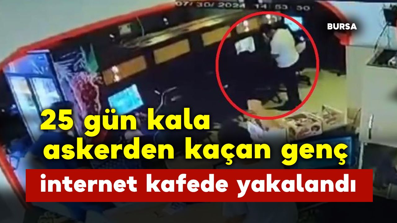 Olay, merkez Yıldırım ilçesi Erikli Mahallesi'nde meydana geldi. Edinilen bilgiye göre, Kuzey Kıbrıs Türk Cumhuriyeti'nde (KKTC) askerlik görevini yerine getiren Erdem Y. (25), tezkeresine 25 gün kala 5 gün izin alarak Bursa'ya geldi. İzni biten Erdem Y., KKTC'ye geri dönmeyince hakkında yakalama kararı çıkartıldı. Yıldırım İlçe Emniyet Müdürlüğü'ne bağlı Ertuğrulgazi Polis Merkezi Amirliği'ne bağlı ekipler, Erdem Y.'nin bir internet kafede olduğu ve oyun oynadığını tespit etti. İnternet kafeye müşteri gibi giren polis, Erdem Y'.yi askeri oyun oynarken gözaltına aldı. Gözaltına alınan şüpheli, işlemlerinin ardından adliyeye sevk edildi. Ardından Erdem Y., birliğine gönderilmek üzere Muradiye Askerlik Şubesi'ne teslim edildi. O anlar güvenlik kamerasına saniye saniye yansıdı.