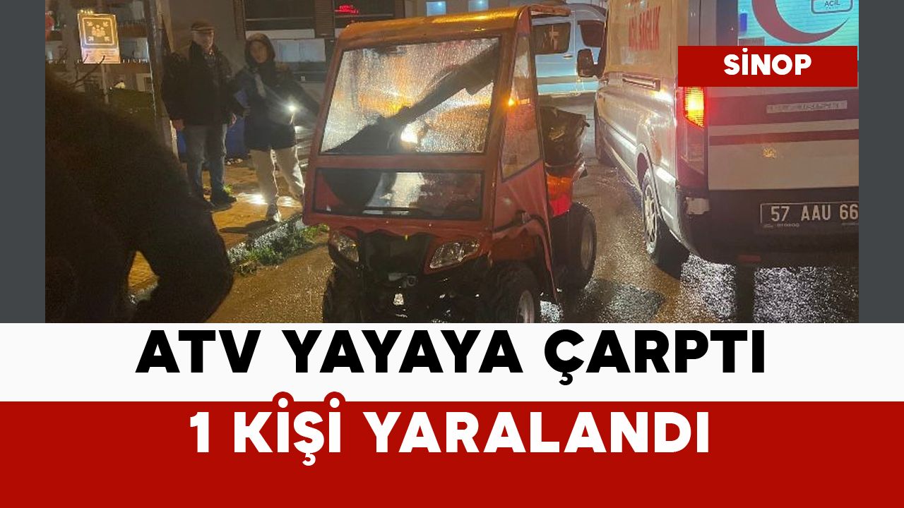 Kaza, 19.00 sıralarında Gelincik Mahallesi, Stad Yolu Caddesi üzerinde meydana geldi. Edinilen bilgilere göre, A.G. idaresindeki 57 AAF 197 plakalı ATV tipi arazi aracı, Lale Sokak'tan Stad Yolu Caddesi'ne dönüş yaptığı sırada karşı kaldırıma geçmek isteyen G.K. (46) adlı kadına çarptı. Çarpmanın şiddetiyle yola savrulan kadın yaralandı. Çevredekilerin ihbarı üzerine olay yerine sağlık ve polis ekipleri sevk edildi. İlk müdahalesi kaza yerinde yapılan G.K., sağlık ekipleri tarafından ambulansla Sinop Atatürk Devlet Hastanesine kaldırıldı.