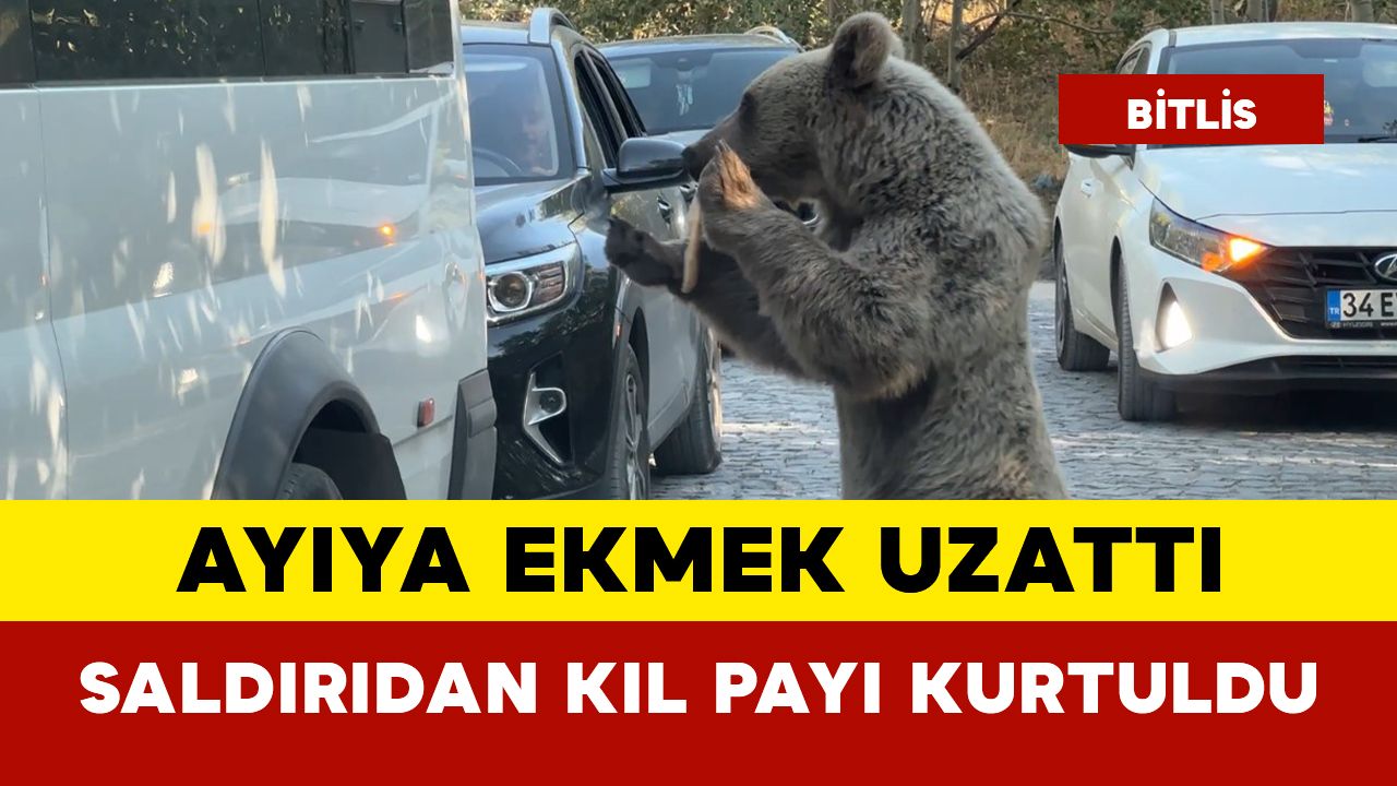 Nemrut Krater Gölü’nü gezmek için aracıyla bölgeye giden bir vatandaş, göl çevresinde yiyecek arayan ayılarla karşılaştı. Aracının camından bir ayıya ekmek uzatmaya çalışan vatandaş, aniden gerçekleşen saldırı girişimiyle büyük tehlike atlattı. O anlar çevredeki vatandaşların cep telefonu kameralarına yansıdı.