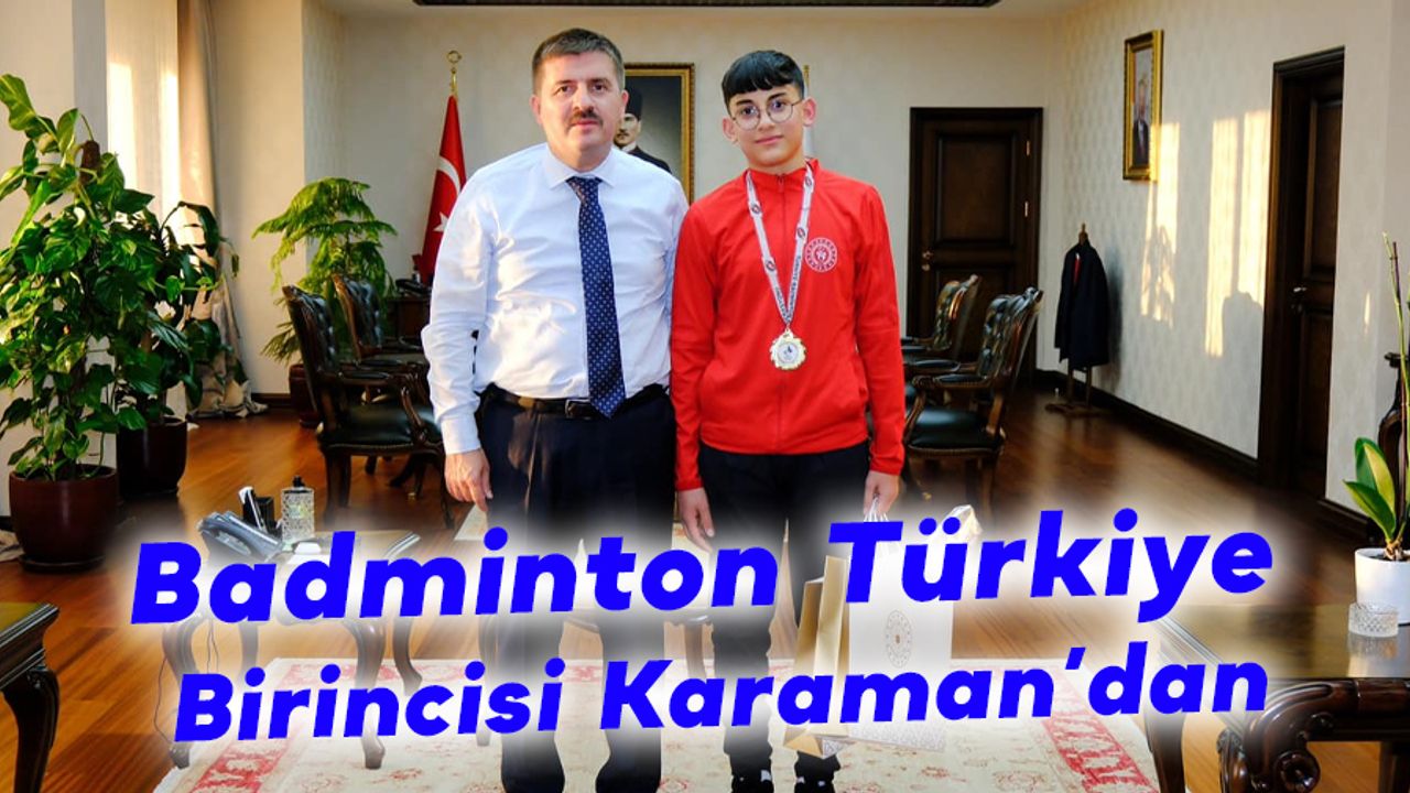 Türkiye Badminton Şampiyonası 15 yaş grubunda Türkiye Birincisi olan Toki Anadolu Lisesi 9. Sınıf öğrencisi Enes Gülcan Karaman Valisi Hüseyin Engin Sarıibrahim’e makamında ziyaret gerçekleştirdi. Türkiye Badminton Şampiyonası 15 yaş grubunda Türkiye Birincisi olan öğrenciyi tebrik eden Vali Hüseyin Engin Sarıibrahim, başarılarının devamını dileyerek hediye takdim etti.