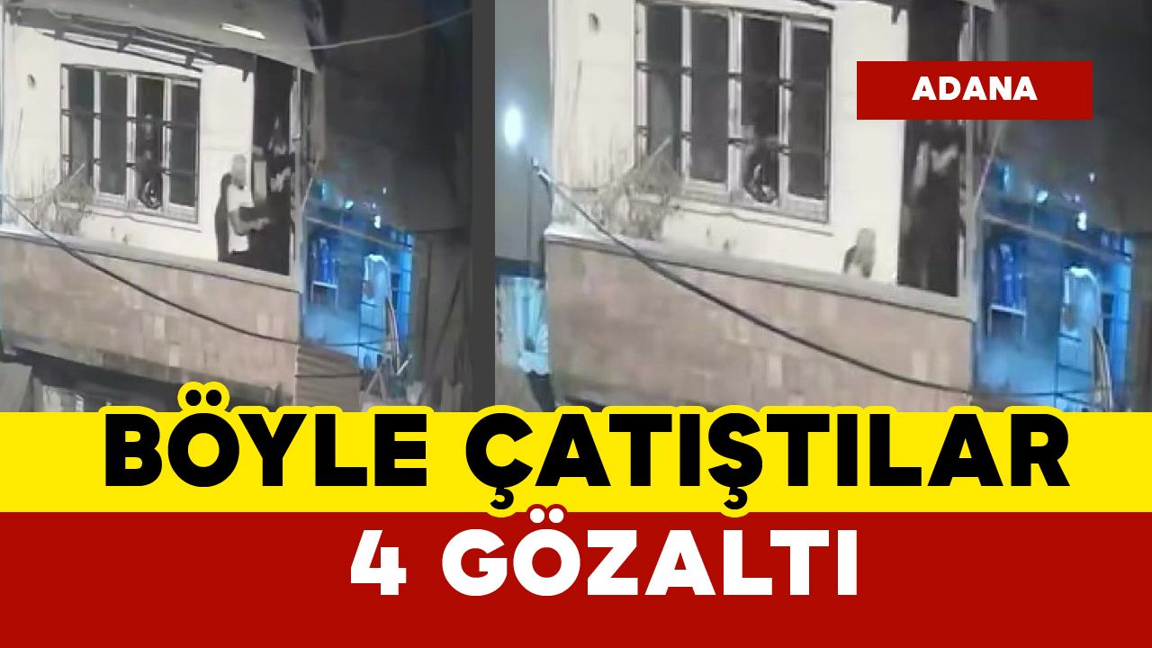 Olay, merkez Seyhan ilçesine bağlı Türkocağı Mahallesi'nde meydana geldi. İddiaya göre, M.P. (22), F.K. (22), O.B. (22) ve C.E.'nin (21) bulunduğu eve, husumetli olduğu komşuları tarafından ateş açıldı. Bu sırada evde bulunan 4 kişi de kendilerine ateş açan komşularına karşılık verdi. Pompalı tüfek ve tabancaların kullanıldığı olay ise cep telefonu kamerasıyla saniye saniye görüntülendi. İhbar üzerine bölgeye çok sayıda polis ekibi sevk edildi. Bölgeye gelen polis, görüntülerde görünen şüpheliler M.P., F.K., O.B ve C.E.'yi olayda kullandıkları pompalı tüfekler ve tabancalarla gözaltına aldı. Olayla ilgili soruşturma sürerken, emniyete götürülen şüphelilerin emniyetteki ifade işlemlerinin de devam ettiği öğrenildi.