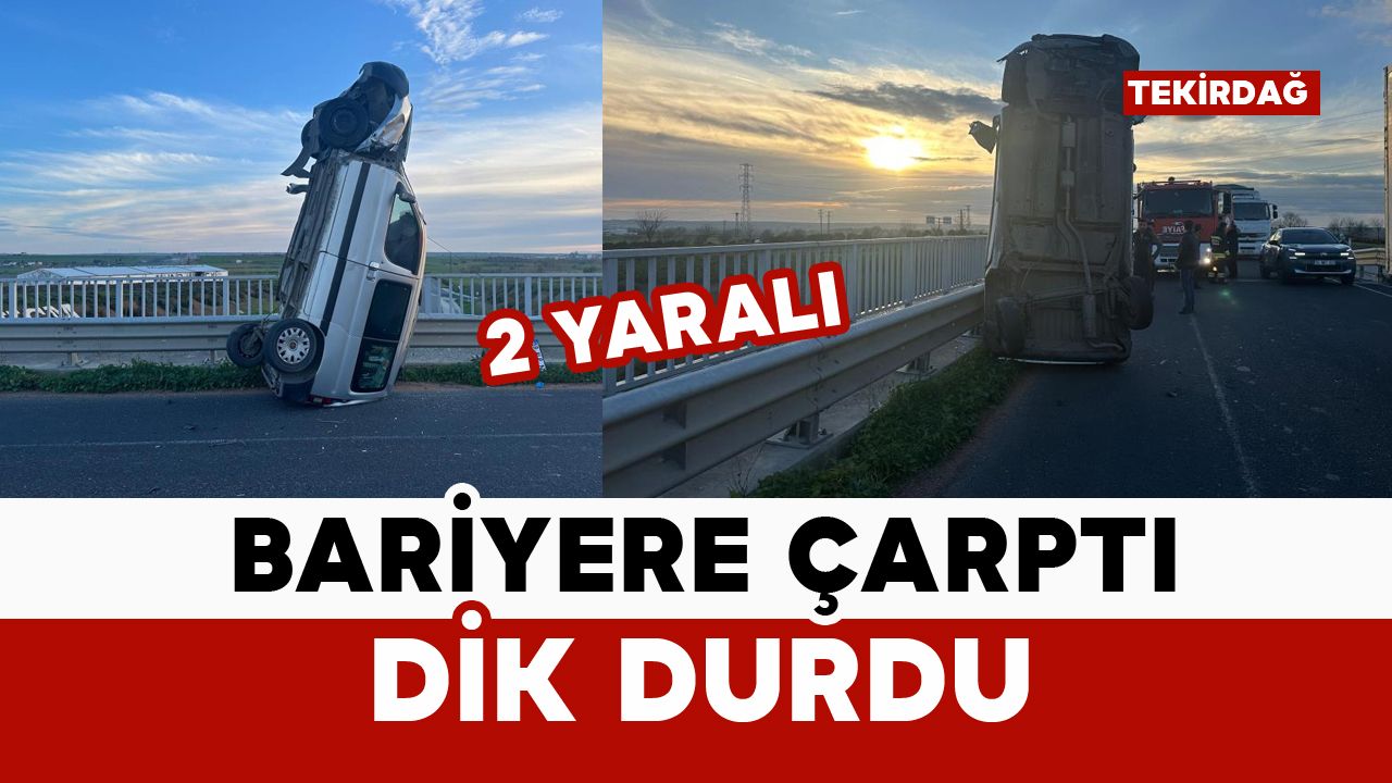 Muratlı–Büyükkarıştıran karayolu üzerinde A.Ç.’nin kullandığı 59 ALP 120 plakalı hafif ticari araç, köprü üzerinde kontrolden çıkarak bariyerlere çarptı ardından dik şekilde durdu. Görenleri hayrete düşüren kazada sürücü A.Ç. ile yolcu H.D. yaralandı. İhbar üzerine olay yerine polis, sağlık ve itfaiye ekipleri sevk edildi. Yaralılar, olay yerinde yapılan ilk müdahalenin ardından ambulansla Tekirdağ Şehir Hastanesi Acil Servisi’ne kaldırıldı.