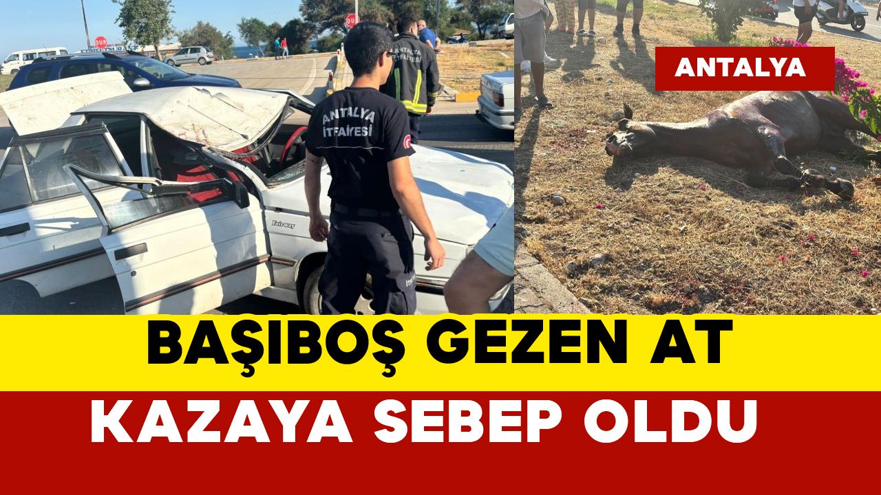 Kaza, dün saat 18.00 sıralarında Finike sahil yolu üzerinde meydana geldi. Edinilen bilgiye göre, 07 VDP 96 plakalı otomobil, seyir halindeyken aniden yola çıkan başıboş ata çarptı. Çarpmanın şiddetiyle araçta bulunan sürücü ve 2 yolcu araç içinde sıkıştı. İhbar üzerine olay yerine gelen itfaiye ekipleri, araç içinde sıkışan yaralıları kurtarırken, yaralılar ilk müdahalelerinin ardından ambulans ile hastaneye kaldırıldı. Kazaya neden olan at, bulunduğu yerden kaldırılarak veterinere teslim edildi. Yaralı hayvan tedavi altına alındı. Yaralıların hayati tehlikelerinin bulunmadığı öğrenildi. Kazayla ilgili inceleme başlatıldı.