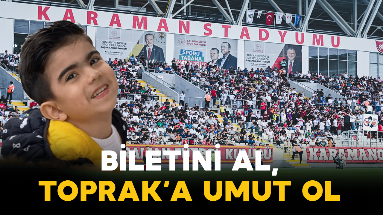 Kulüpten yapılan açıklamada, “Biletini Al DMD Hastası Toprak’a Umut Ol! Şanlıurfaspor ile oynayacağımız maçın bilet gelirleri, Karamanlı DMD Hastası Toprak’ın tedavisine bağışlanacaktır. Tüm taraftarlarımızı hem takımımıza destek olmak hem de Toprak’ın umut yolculuğuna katkı sağlamak için stadyuma bekliyoruz.” ifadelerine yer verildi.
