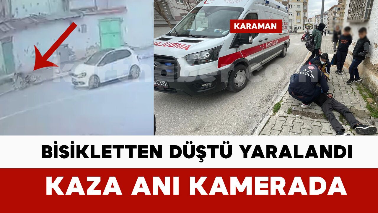 Olay, saat 15.30 sıralarında Mahmudiye Mahallesi Fevzi Paşa Caddesi üzerinde meydana geldi. Edinilen bilgiye göre, cadde üzerinde bisikletiyle ilerleyen 13 yaşındaki M.P.Ç., henüz bilinmeyen bir nedenle dengesini kaybederek kaldırıma devrildi. Çarpmanın etkisiyle yere savrulan çocuk yaralandı. Kazayı görenlerin ihbarı üzerine olay yerine sağlık ekipleri sevk edildi. Yaralı çocuk, olay yerindeki ilk müdahalesinin ardından ambulansla Karaman Eğitim ve Araştırma Hastanesi’ne kaldırılarak tedavi altına alındı. Öte yandan kaza anı, çevredeki bir güvenlik kamerası tarafından anbean kaydedildi. Görüntülerde çocuğun bisikleti sürerken dengesini kaybederek bisikletin devrilmesi görülüyor.