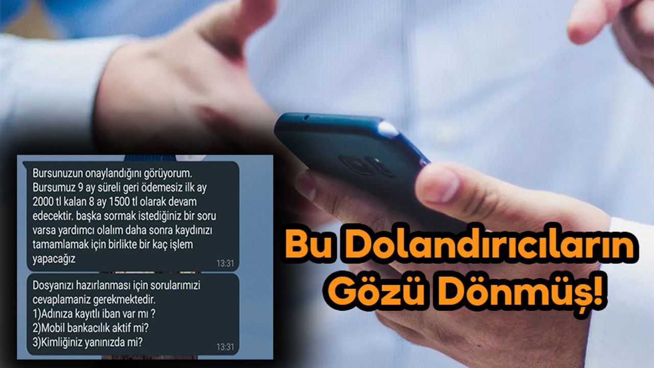 Üniversite kapılarının açılmasıyla harekete geçen dolandırıcılar ele geçirdikleri iletişim bilgileriyle, öğrencilere mesaj göndermeye başladı. Gençleri aylık 2 bin TL’ye varan burs vaadiyle kandıran dolandırıcılar, daha çok üniversiteye yeni başlayan öğrencileri hedeflerine koydu. Dolandırıcılar öğrencilere attıkları mesajın içeriğinde “Bursunuzun onaylandığını görüyorum. Bursunuz 9 ay süreli geri ödemesiz ilk ay 2 bin TL kalan 8 ay bin 500 TL olarak devam edecek. Başka sormak istediğiniz bir soru varsa, yardımcı olalım. Sonra kaydınızı yaptırmak için birkaç işlem yapacağız” diyerek öğrencilerden “Adınıza kayıtlı IBAN var mı? Mobil bankacılık kullanıyor musunuz? Kimliğiniz yanında mı?” sorularını yönelttiği görüldü. Bazı dolandırıcıların öğrencileri etkilemek için 50 yıllık tarihe sahip vakıfların isimlerini kullandığı görüldü.