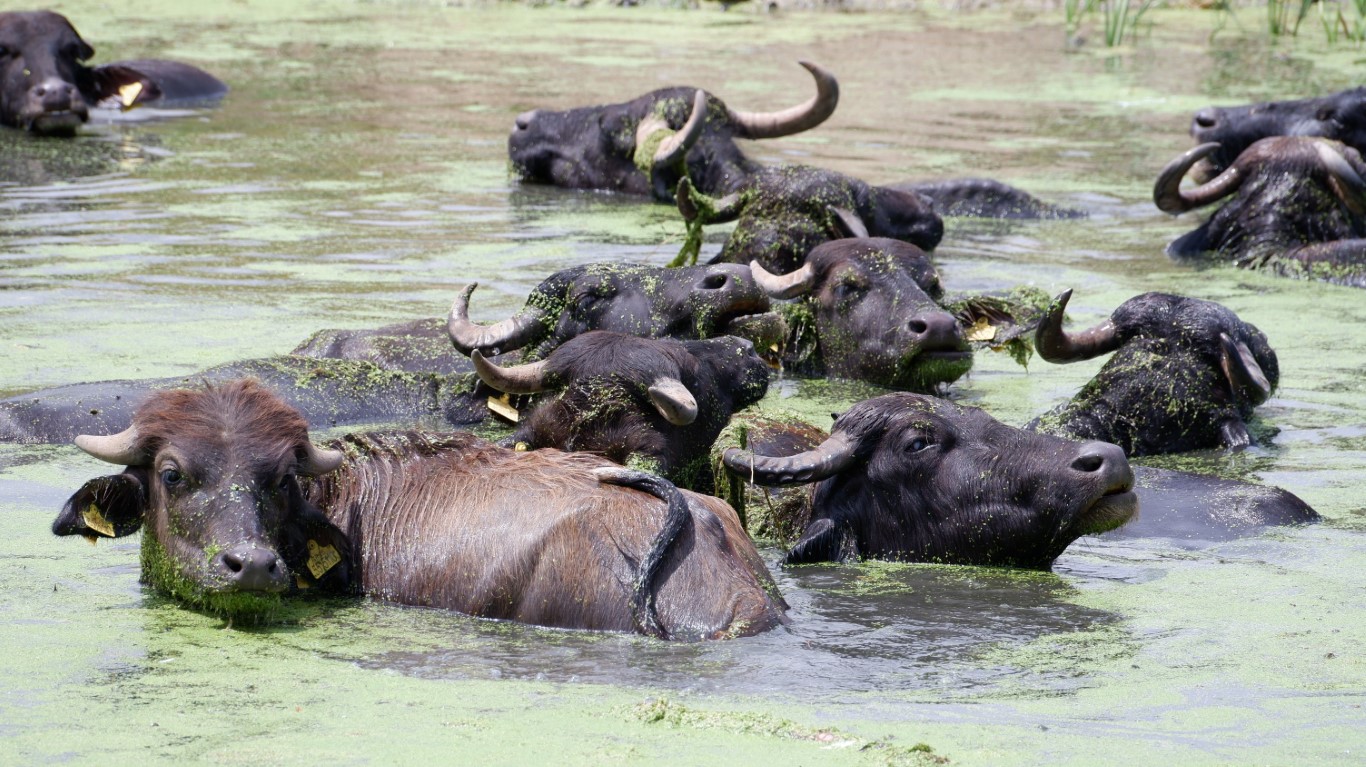 Havaların son günlerde çok sıcak olması nedeniyle birkaç saatlik otlamadan sonra dereye akın eden mandaların banyosu saatlerce sürüyor.