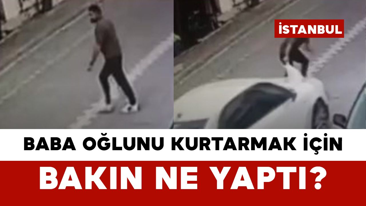 Güvenlik kamerasına yansıyan görüntülerde, olayın ne kadar kısa sürede geliştiği ve babanın refleksle çocuğunu kurtarışı net bir şekilde görülüyor.