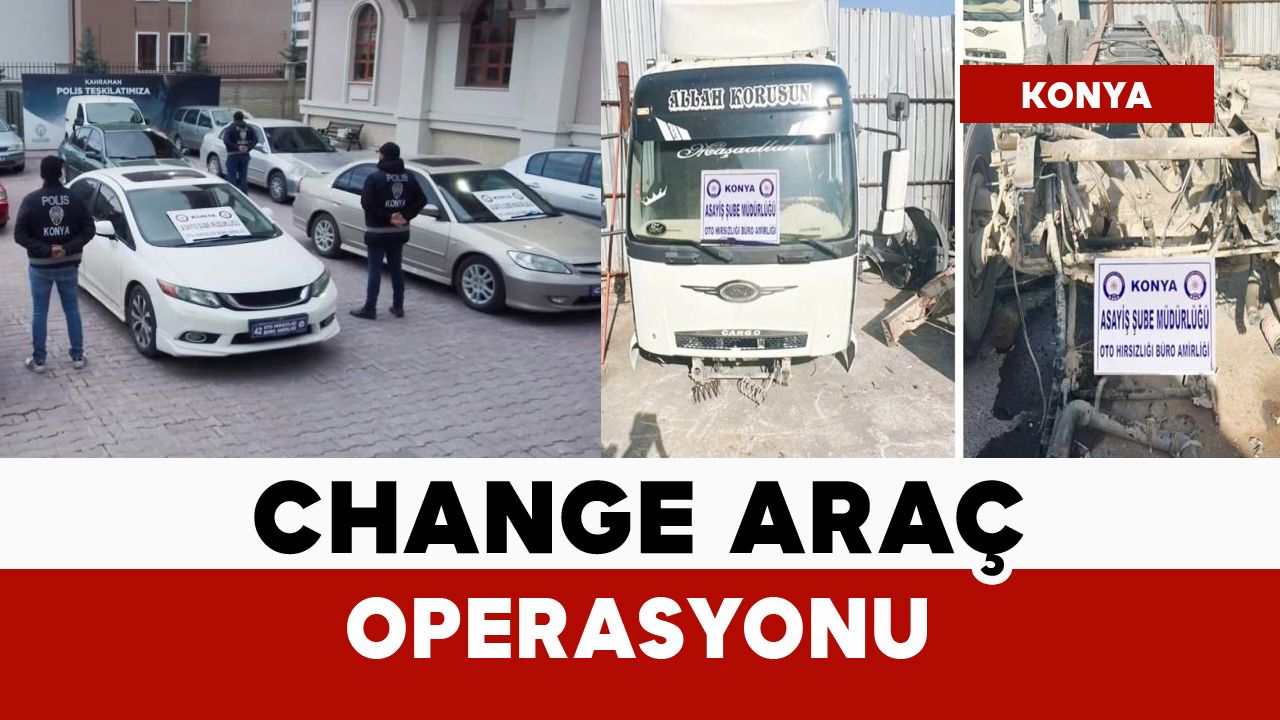 Konya Emniyet Müdürlüğü ekipleri tarafından gerçekleştirilen operasyonlar kapsamında, 83 adet gümrük kaçağı, 22 adet yakalamalı-hacizli, 5 adet çalıntı, 5 adet aranan olmak üzere toplam 115 adet change araca el konuldu.