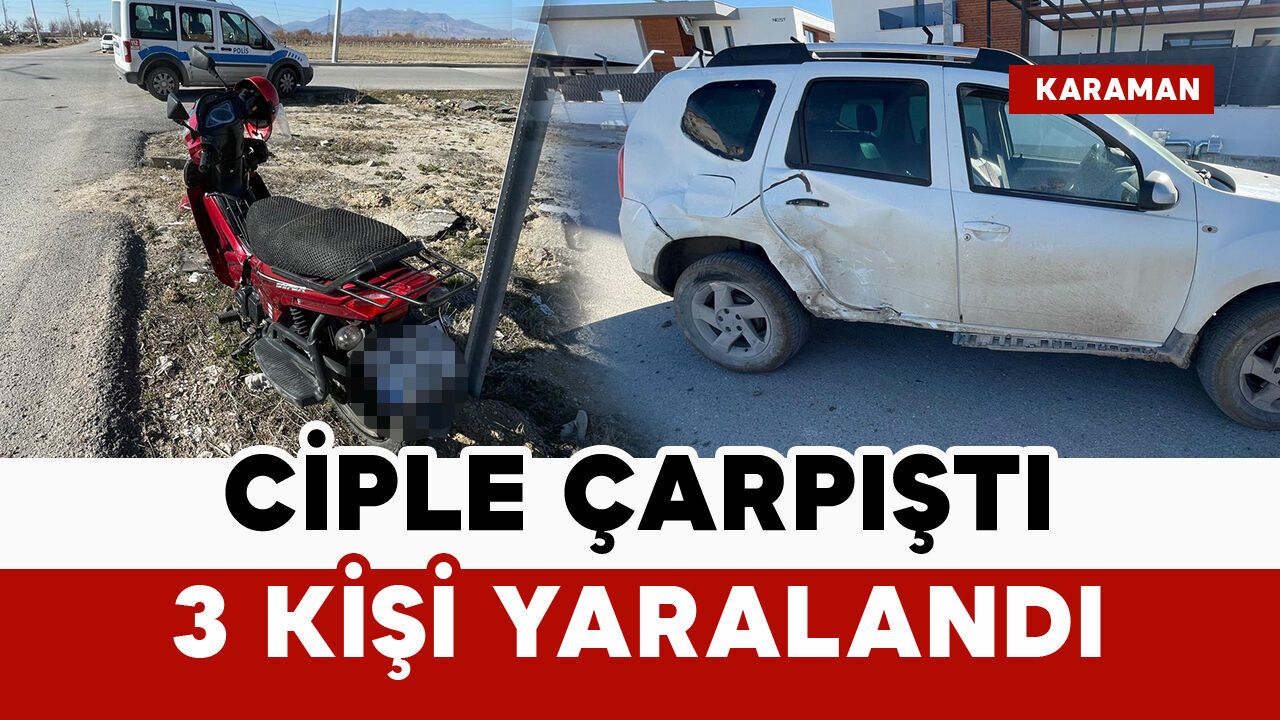 Kaza, saat 16.00 sıralarında Sümer Mahallesi Ertuğrul Gazi Bulvarı üzerinde bulunan kavşakta meydana geldi. Edinilen bilgiye göre, Y.A. (16) idaresindeki 48 AKZ 1*9 plakalı motosiklet ile Y.D. (18) yönetimindeki 70 H* 0*6 plakalı Dacia marka cip çarpıştı. Kazada motosiklet sürücüsü Y.A. ile motosiklette yolcu olarak bulunan 2 kişi yaralandı. İhbar üzerine kaza yerine sağlık ve polis ekipleri sevk edildi. Yaralılar, olay yerinde yapılan ilk müdahalelerinin ardından ambulanslarla Karaman Eğitim ve Araştırma Hastanesi’ne kaldırılarak tedavi altına alındı.