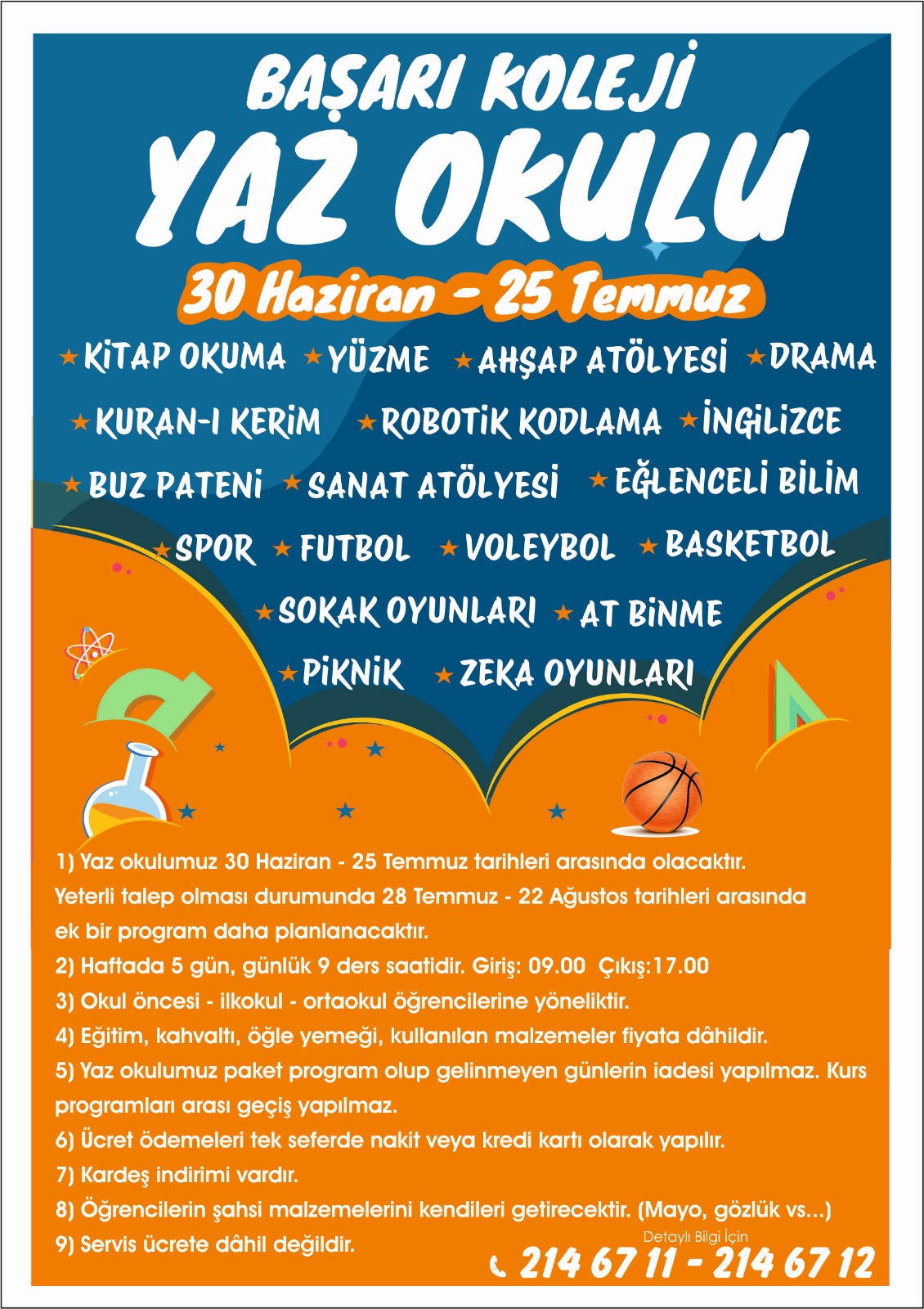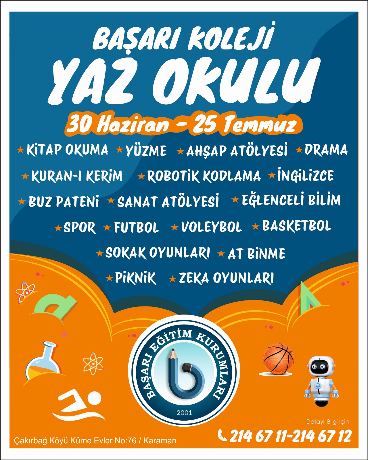 "Başarı Eğitim Kurumları olarak, 20 Haziran 2025’te yaz tatiline girilmesinin ardından, 30 Haziran’da başlayacak şekilde öğrencilerimiz için yaz okulu planladık.