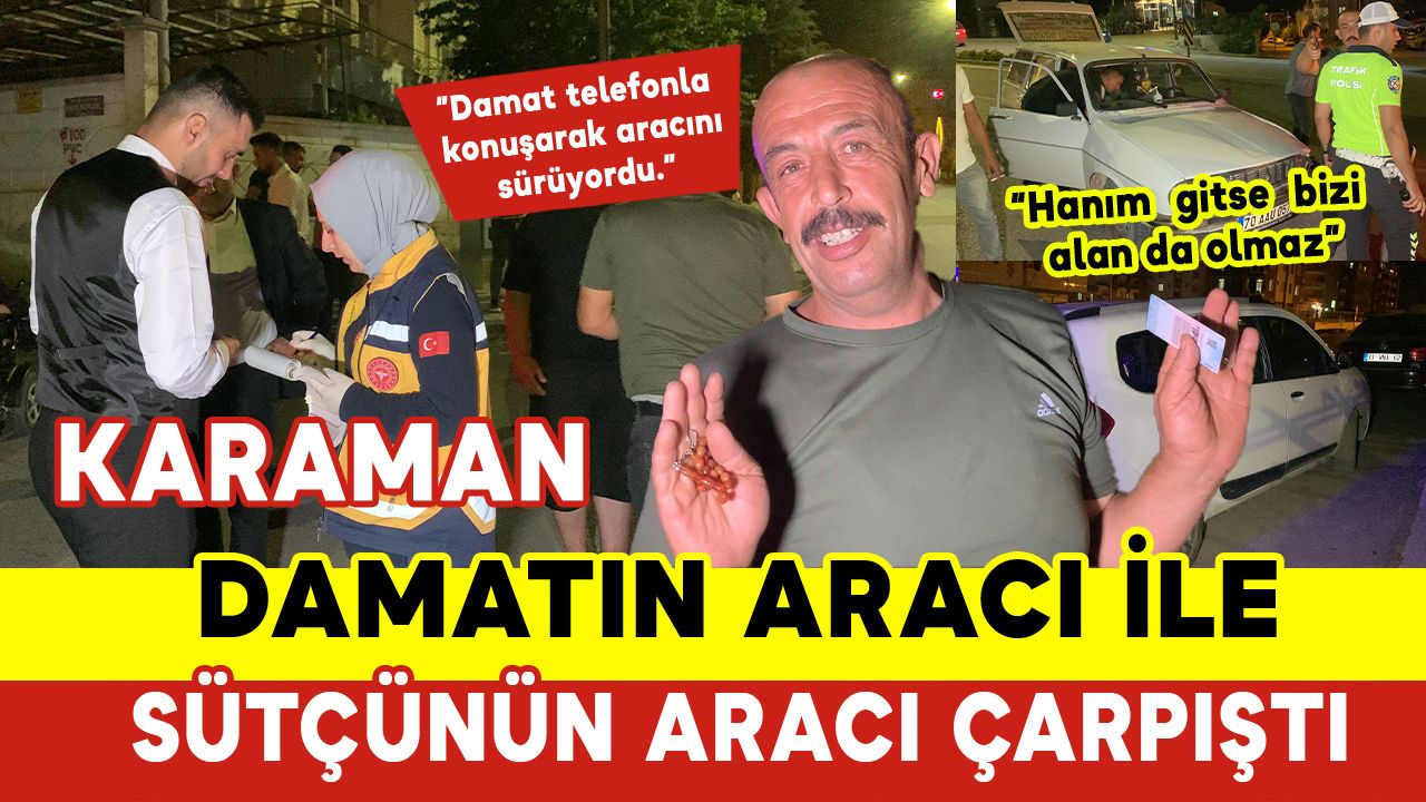 Kaza, saat 22.20 sıralarında Tabduk Emre Mahallesi Yavuz Sultan Selim Bulvarı üzerinde meydana geldi. İddiaya göre, H.K. idaresindeki 70 AAU 057 plakalı otomobil ile S.E. isimli damatın yönetimindeki 42 AHH 739 plakalı Dacia marka otomobil bulvar üzerinde çarpıştı. Çarpışmanın etkisiyle H.K’nin aracındaki eşi yaralandı. İhbar üzerine olay yerine sağlık ve polis ekibi sevk edildi. Kazada yaralanan H.K.’nin eşi ambulansla Karaman Eğitim ve Araştırma Hastanesi’ne kaldırılarak tedavi altına alındı.