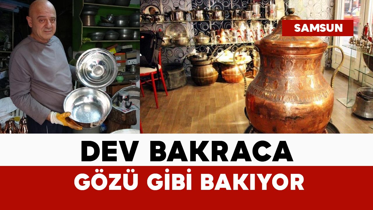 Üzerinde milyonlarca çekiç darbesi bulunan dev bakraç, İlkadım ilçesindeki dükkanda 19 yıldır sergileniyor. Eser, güvenlik kameraları ve alarm sistemleri ile korunuyor.