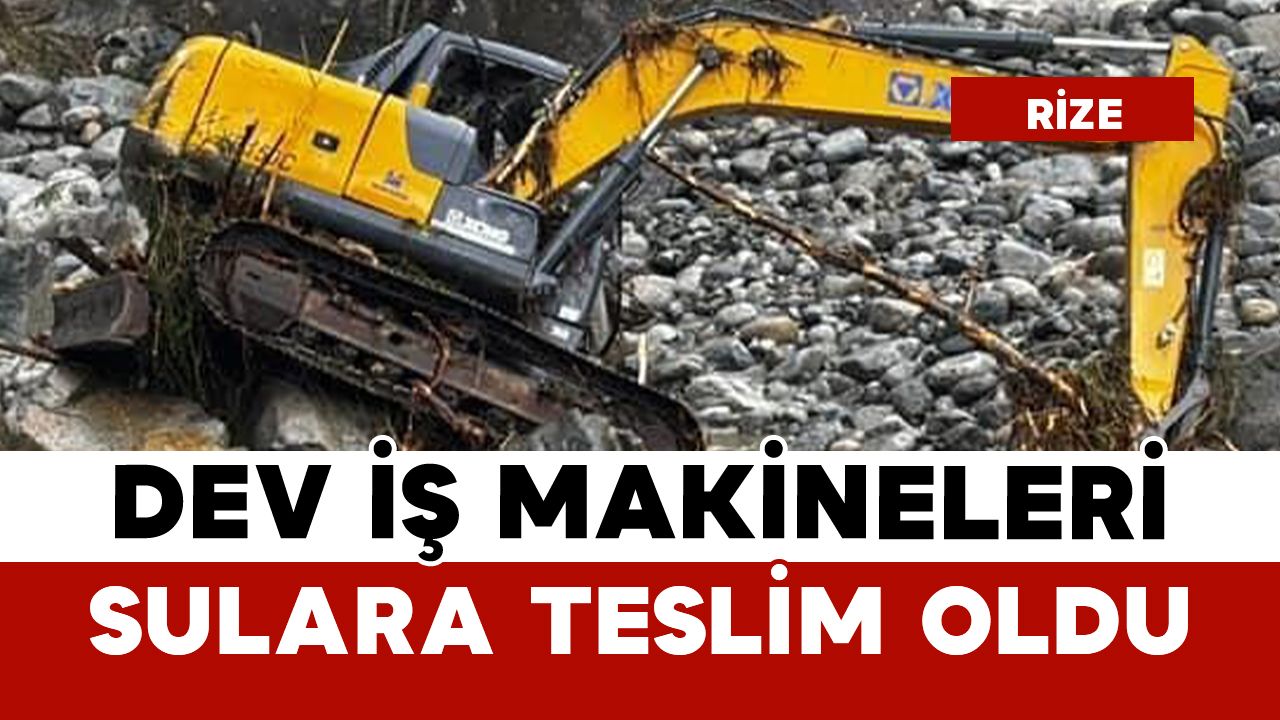 Ardeşen’e bağlı Deremezra köyünde meydana gelen olayda, sel sularına kapılan 2 iş makinesi ve bir taşıyıcı kamyon, kontrolsüz şekilde yoldan dere yatağına sürüklendi. Tonlarca ağırlığa sahip araçlar, suyun şiddetine dayanamayarak dereye düştü.