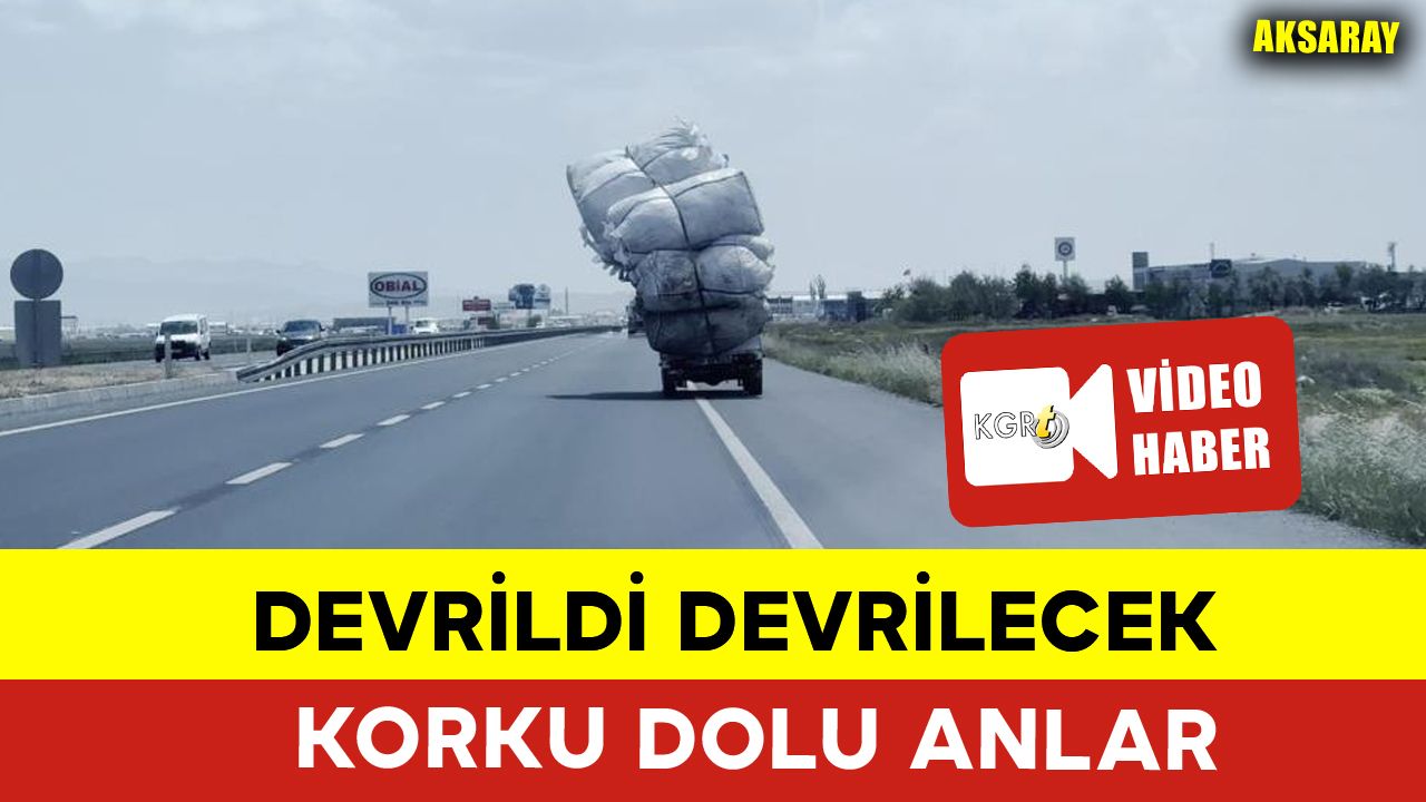 Aksaray - Adana Kara yolunun 1. kilometresinde yaşanan olayda edinilen bilgiye göre, 68 MA 1039 plakalı kamyonete büyük çuvallarla yük yükleyen sürücü tek bir iple bağladığı o yükle karayoluna çıktı. Kamyonetin neredeyse 3 katı yük yüklenen kamyoneti seyir halinde gören sürücüler adeta şok geçirdi. Yürekleri ağza getiren kamyonet sürücüsü yükün sol tarafa kaymasına da aldırış etmeden adeta kazaya davetiye çıkarırcasına seyretmeye devam etti. Kameraya yansıyan görüntülerde devrilmesi an meselesi olan kamyonetin de yükle birlikte sol tarafa yattığı görülürken karayolundaki bu tehlikeli taşımacılık herkesi pes dedirtti.