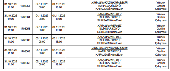 MERAM Elektrik Dağıtım A.Ş. Karaman 1 İşletme sorumluluk alanında bulunan Karaman'da planlı elektrik kesintisi yapacak.