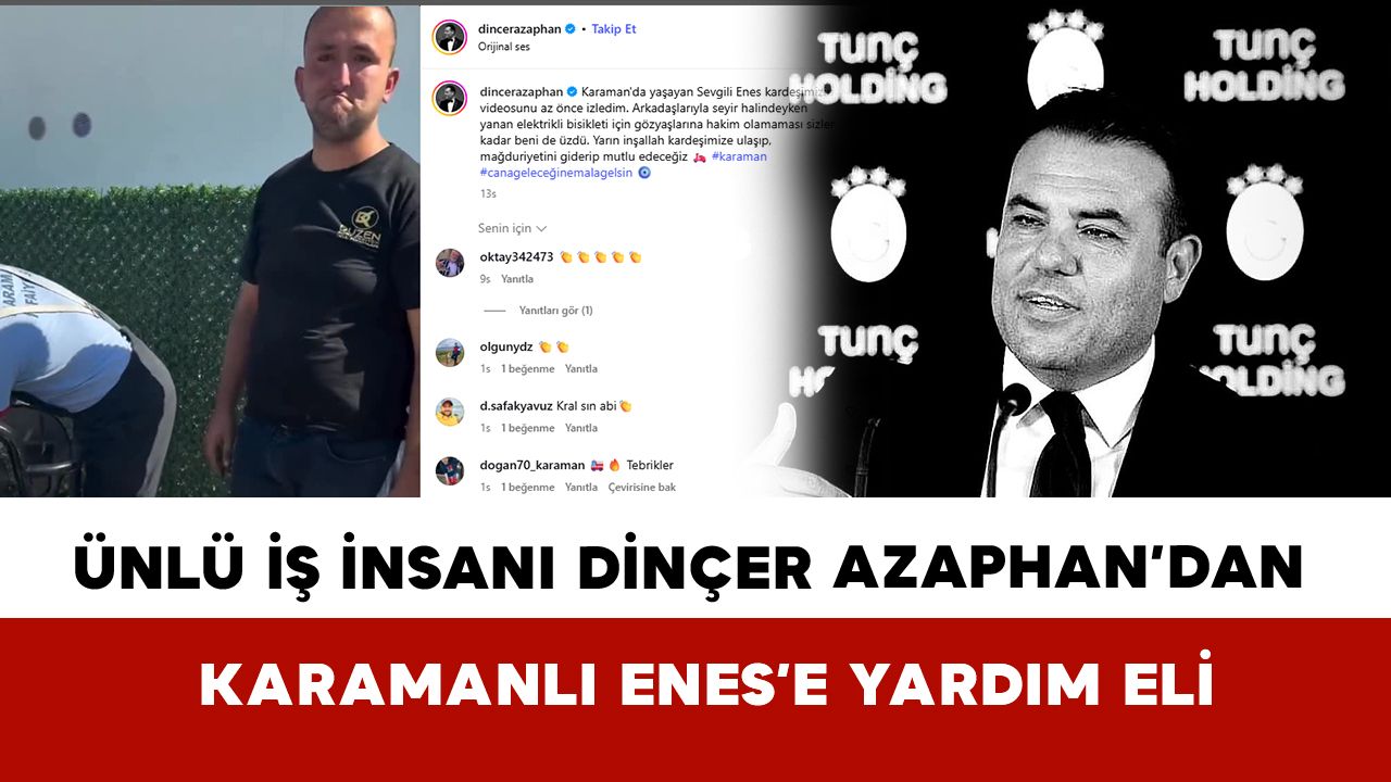 Türkiye’nin önde gelen iş insanlarından İş insanı Dinçer Azaphan, Karaman’da yaşan Enes Eyice’nin arkadaşları ile birlikte seyir halinde elektrikli bisikleti ve telefonun yanması sonrası desteğini esirgemeyerek müjdeli haberi sosyal medyadan duyurdu.