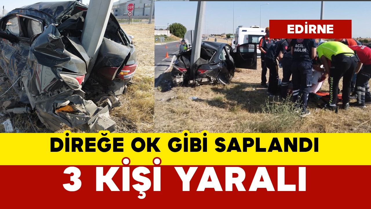 Edinilen bilgiye göre, Havsa ilçesinde M.Ö idaresindeki plakası öğrenilemeyen kamyon ile M.V. yönetimindeki 55 ACF 479 plakalı otomobil kavşakta çarpıştı. Çarpışmanın etkisiyle savrulan otomobil, refüjdeki aydınlatma direğine çarparak durabildi. Otomobilin direğe ok gibi saplandığı kazada, araçta bulunan 3 kişi yaralandı. İhbar üzerine bölgeye polis, sağlık, itfaiye ve AFAD ekipleri sevk edildi. Yaralılar, olay yerinde yapılan ilk müdahalenin ardından ambulanslarla hastaneye kaldırıldı. Kamyon sürücüsü ifadesi alınmak üzere karakola götürülürken, polis kazayla ilgili inceleme başlattı.