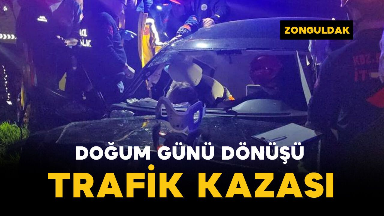 Kaza, Göktepe mevkisinde meydana geldi. Edinilen bilgilere göre, Akçakoca istikametinden Ereğli yönüne seyir halinde olan D.Ö. idaresindeki 06 CZC 052 plakalı otomobil, sürücüsünün direksiyon hakimiyetini kaybetmesi sonucu virajı alamayarak yol kenarındaki beton panele çarptı. Kazada, bir doğum günü partisinden döndükleri öğrenilen sürücü D.Ö. ile araçta yolcu olarak bulunan Ö.E. ve T.Y. yaralandı.