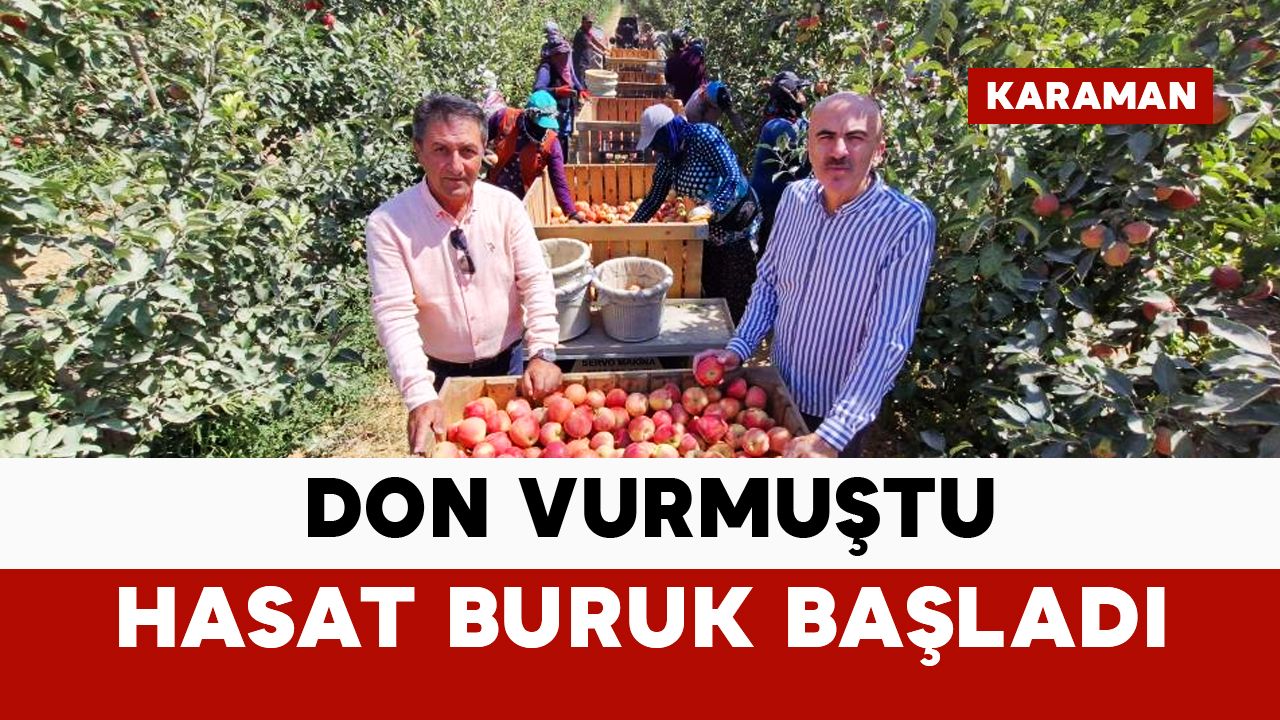 Karaman Ziraat Odası Başkanı Mehmet Bayram, bu yıl elma üreticisi için zor bir yıl olduğunu söyledi. Bayram, Nisan ayında yaşanan zirai don nedeniyle Karaman genelinde elma başta olmak üzere tüm meyvelerde yüzde 90'lara varan bir hasarın oluştuğunu belirterek, "Böyle zor bir sezonda ender bir şekilde elma olan bahçelerimizde hasat yapılmaya başladı. Hasadı yapılan elma çeşidi geç çiçek açan ve soğuğa dayanıklı olan gala cinsidir. Bu yıl elma ile ilgili hem üreticimiz açısından hem de tüketicimize gelene kadar zor bir süreç bekliyoruz" dedi.