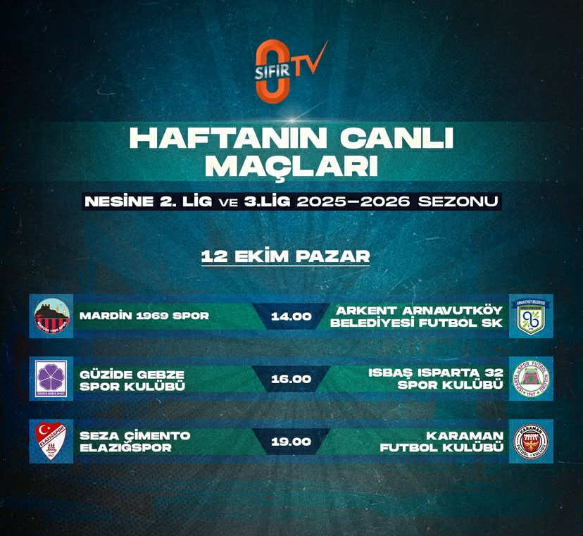 Sıfır TV, 2. Lig’de birçok karşılaşmayı canlı olarak yayınlayacak. İşte hafta sonu ekranlara gelecek diğer maçlar: