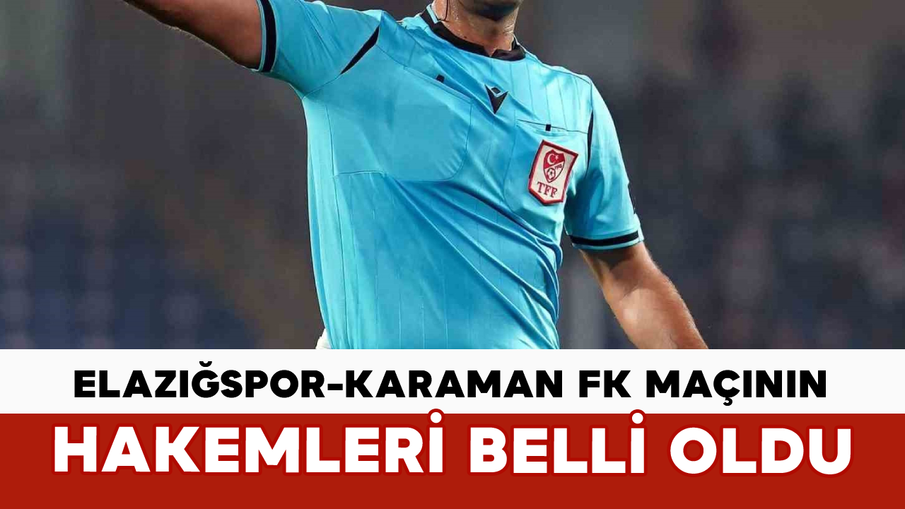 Ligin 8. haftasında oynanacak kritik mücadele öncesinde Türkiye Futbol Federasyonu (TFF), karşılaşmada görev alacak hakemleri resmi internet sitesinden duyurdu. Elazığspor ile Karaman FK karşılaşması 12 Ekim Pazar günü saat 19.00’da Elazığ Stadyumu’nda oynanacak. Deplasmanda oynanacak olan karşılaşmanın hakemi Rize Bölgesinden Yücel Büyük yönetecek. Büyük’ün yardımcı hakemleri ise, Muğla Bölgesinden Ersin Erbay ve Antalya Bölgesinden Furkan Yıldız olacak.