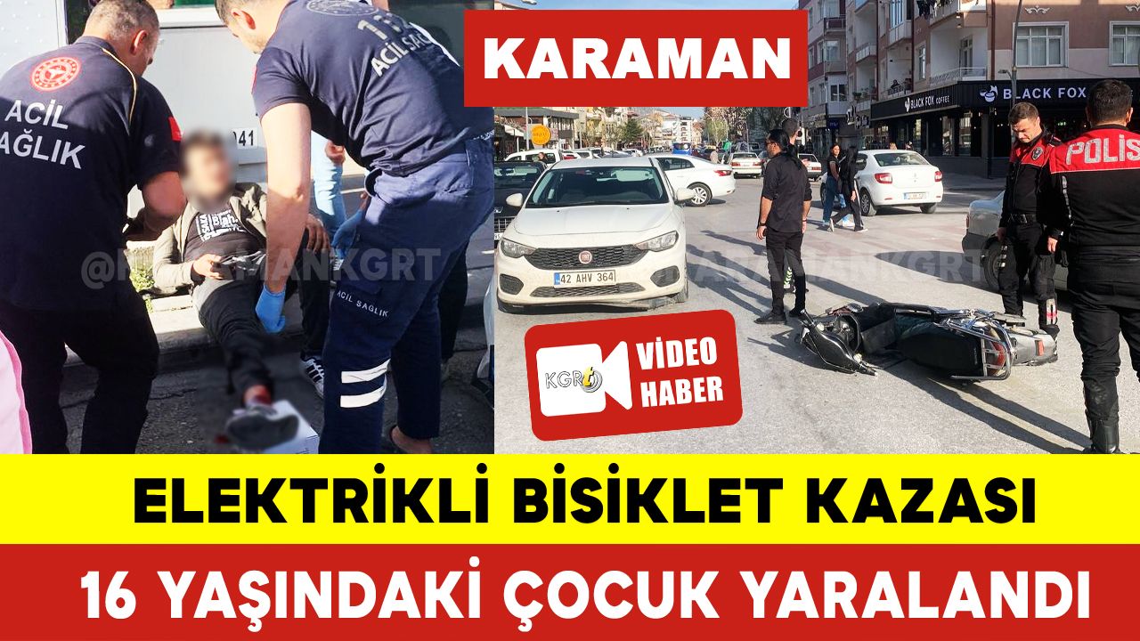 Karaman’da saat 17.00 sıralarında Külhan Mahallesi’nde meydana gelen kazada edinilen bilgiye göre, Kemal Kaynaş Caddesi’nde seyir halinde olan A.Ö. idaresindeki otomobil ile 2. İstasyon Caddesi’nden gelmekte olan elektrikli bisiklet çarpıştı. Çarpışmanın etkisiyle elektrikli bisiklet sürücüsü 16 yaşındaki çocuk yaralandı. Kazayı gören vatandaşlar yaralı çocuğa yardıma koştu. İhbar üzerine olay yerine sağlık ve polis ekipleri sevk edildi. Kazada bacağından yaralanan çocuk sağlık ekiplerinin olay yerinde yaptığı müdahale sonrasında ambulansla Karaman Eğitim ve Araştırma Hastanesi’ne kaldırıldı. Polis kazayla ilgili inceleme başlattı.