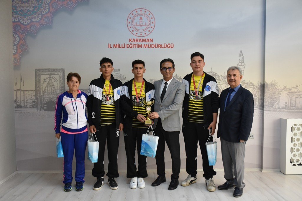 Ziyaretten duyduğu memnuniyeti dile getiren İl Millî Eğitim Müdürü Mehmet Çalışkan ise öğrencilerin elde ettiği başarının planlı çalışma ve doğru yönlendirme ile geldiğini ifade etti. Çalışkan, “Elde ettiğiniz bu başarı; azmin, kararlılığın ve emeğin en güzel göstergesidir. Derslerinizle birlikte sportif faaliyetlere de zaman ayırmanız, çok yönlü bireyler olarak yetiştiğinizi ortaya koyuyor. Sizler sadece okulunuzu değil, aynı zamanda Karaman’ı da en güzel şekilde temsil ettiniz.” dedi.