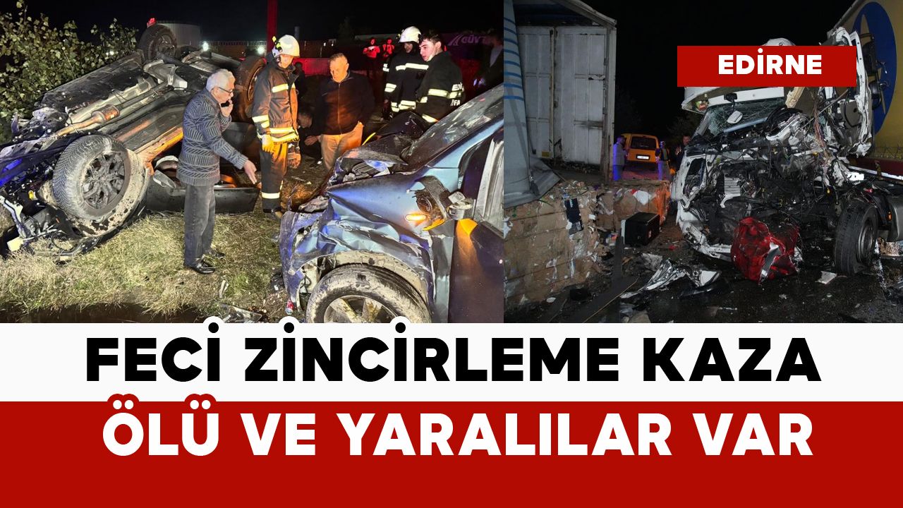 Edinilen bilgiye göre, Edirne-Lalapaşa kara yolunda henüz belirlenemeyen bir nedenle iki tır ile üç otomobil çarpıştı. Çarpışmanın etkisiyle araçlar hurdaya dönerken, kaza yeri adeta savaş alanına döndü. İhbar üzerine olay yerine çok sayıda itfaiye, sağlık ve jandarma ekibi sevk edildi.