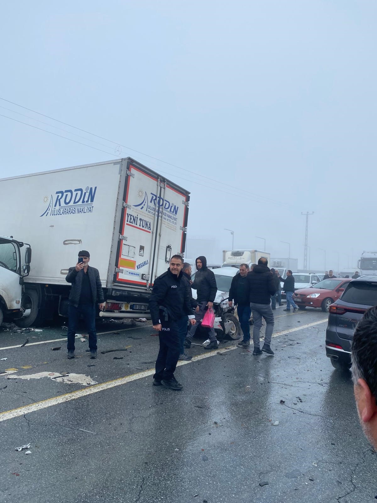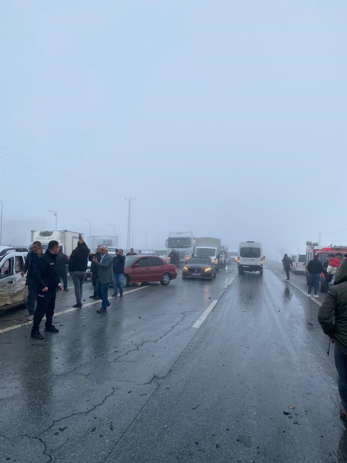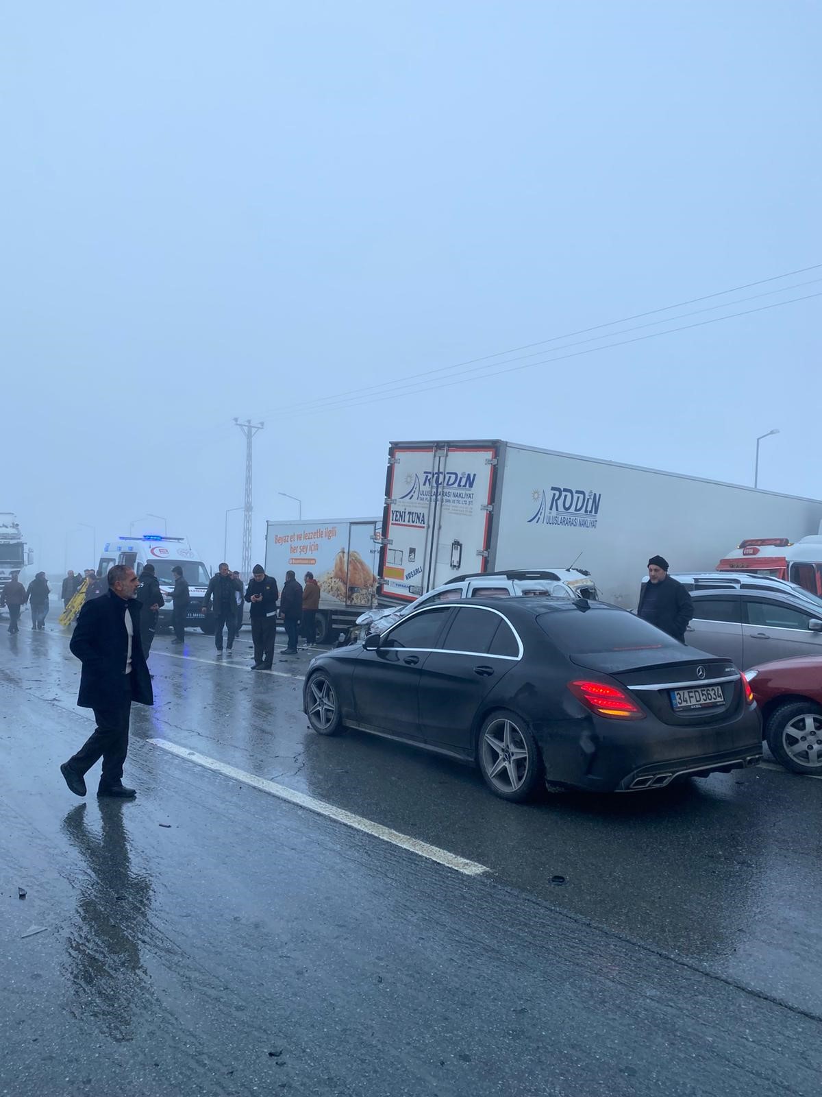 Kaza, Rahva Mevkii’nde sabah saatlerinde yaşandı. Yoğun sis ve kaygan zeminin etkili olduğu bölgede tır, yolcu minibüsü, şehir içi minibüs ve çok sayıda otomobilin karıştığı kazada araçların birçoğu kullanılamaz hale geldi. İlk bilgilere göre, kazada 31 kişi yaralandı. Olay yerine çok sayıda ambulans, sağlık ekibi, kurtarma ekibi ve polis sevk edildi. Kaza nedeniyle yol çift yönlü olarak trafiğe kapatılırken, kilometrelerce araç kuyruğu oluştu. Ekiplerin kurtarma ve yol açma çalışmaları devam ediyor.