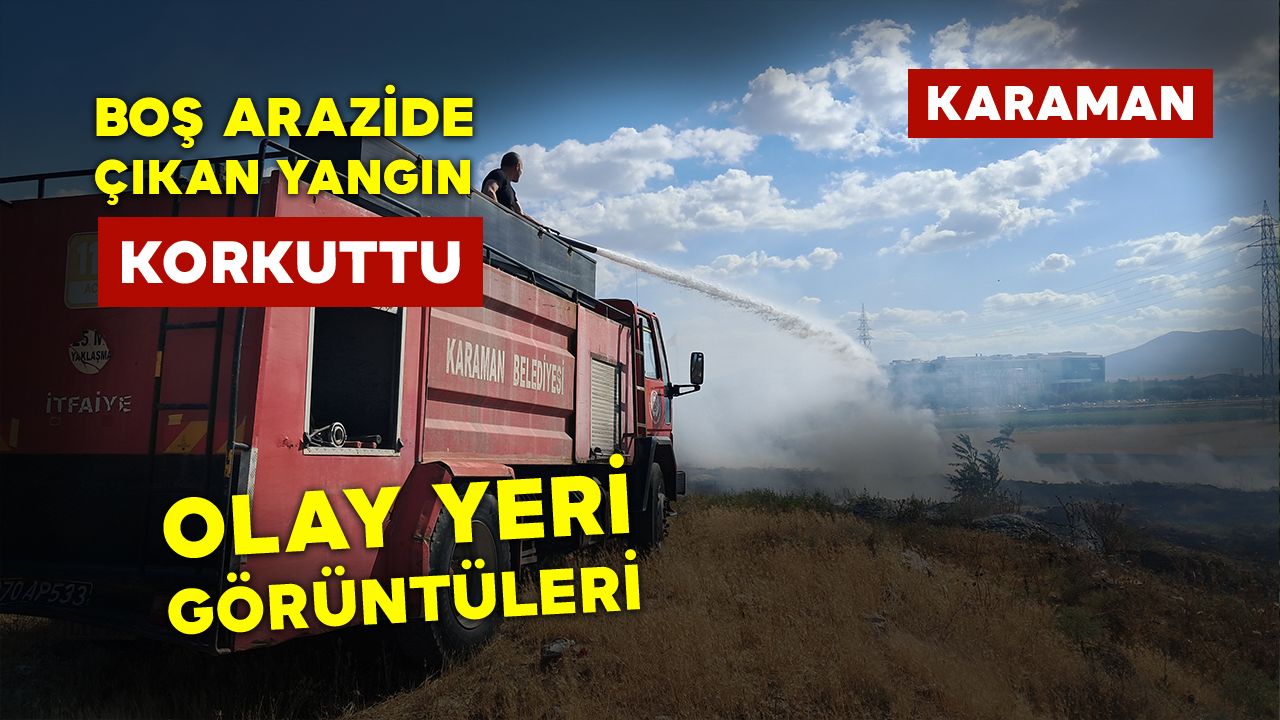 Karaman'da boş arazide çıkan yangın rüzgarın etkisiyle etrafa yayıldı. İtfaiye ekibinin çalışması sonucu yangın kontrol altına alınarak söndürüldü.