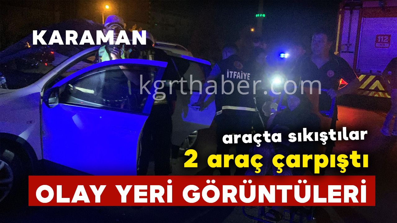 Kaza, 23.30 sıralarında Hamidiye Mahallesi İbrahim Öktem Bulvarı üzerinde meydana geldi. Edinilen bilgiye göre, aynı istikamette seyir halinde olan K.K. idaresindeki 33 EGY 77 plakalı Nıssan marka cip ile E.T. yönetimindeki 70 ABH 277 plakalı Opel marka otomobil çarpıştı. Çarpışmanın etkisiyle savrulan cip aydınlatma direğine çarparak durabildi. Kazada cipte bulunan K.K. isimli sürücü ile araçta yolcu olan yaşlı kadın sıkıştı. İhbar üzerine olay yerine sağlık, itfaiye ve polis ekipleri sevk edildi. İtfaiye ekiplerince çıkarılan yaralılar ambulansla Karaman Eğitim ve Araştırma Hastanesi'ne kaldırılarak tedavi altına alındı.