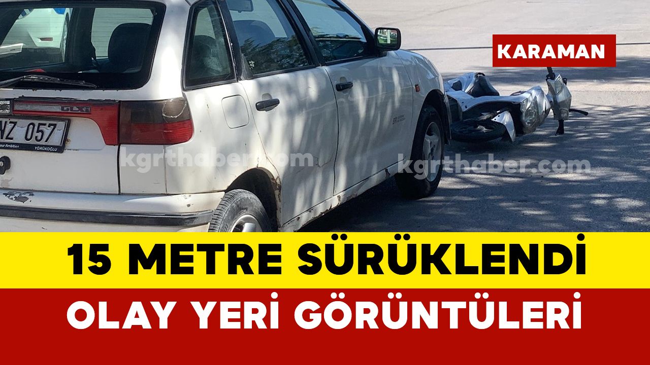 Karaman’da otomobille çarpışan elektrikli bisiklet sürücüsü yaklaşık 15 metre sürüklenirken kazada 15 yaşındaki çocuk yaralandı.