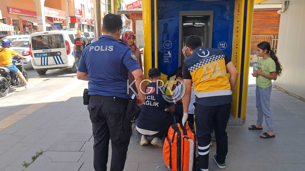 Karaman’da PTT şubesi önünde yere yığılan 19 yaşındaki genç kız hastanelik oldu.