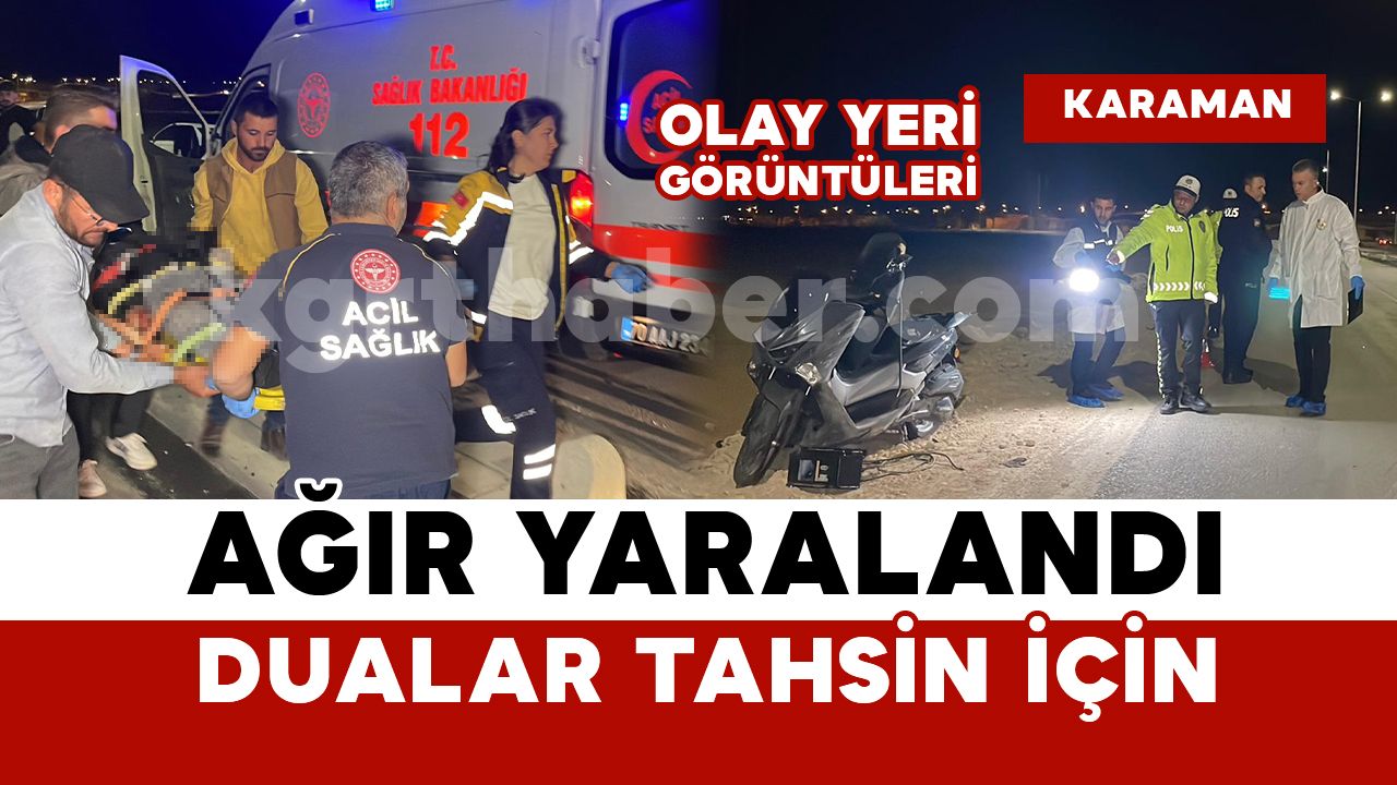 Karaman’da kontrolden çıkarak devrilen motosikletin sürücüsü ağır yaralandı.