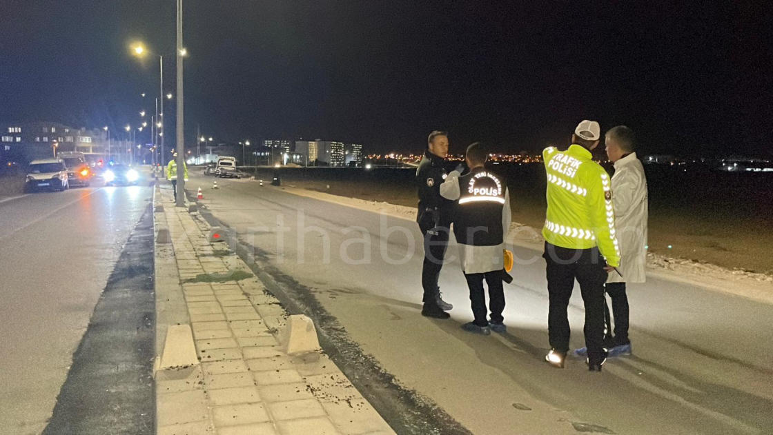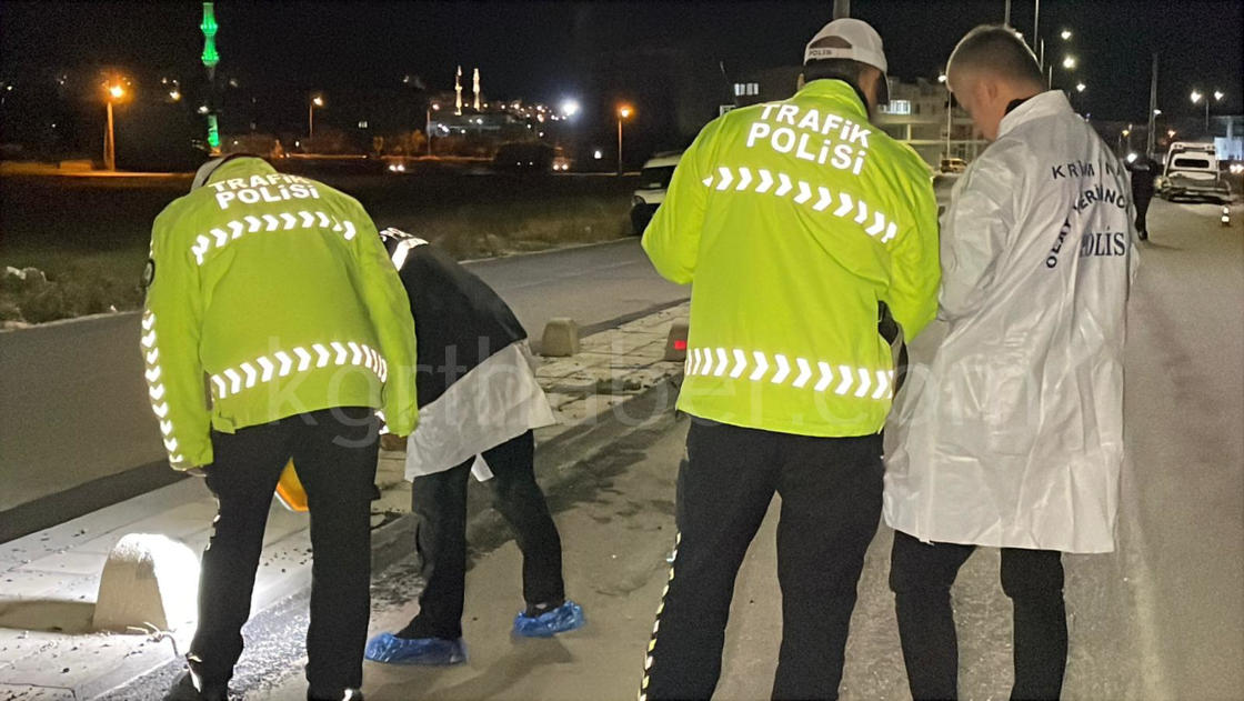 Olay yeri inceleme ekibi olay yerinde inceleme yaparken, trafik ekipleri yol üzerinde güvenlik önlemi aldı.