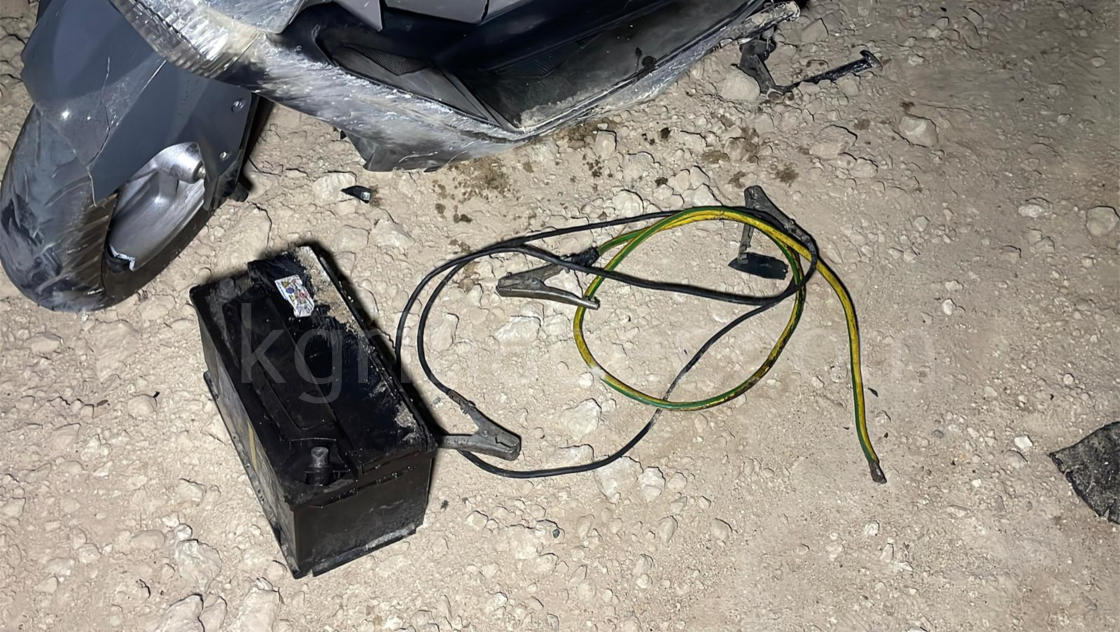 Öte yandan kaza yapan motosikletin yakınlarında araç aküsüyle akü takviye kablosu görüldü.