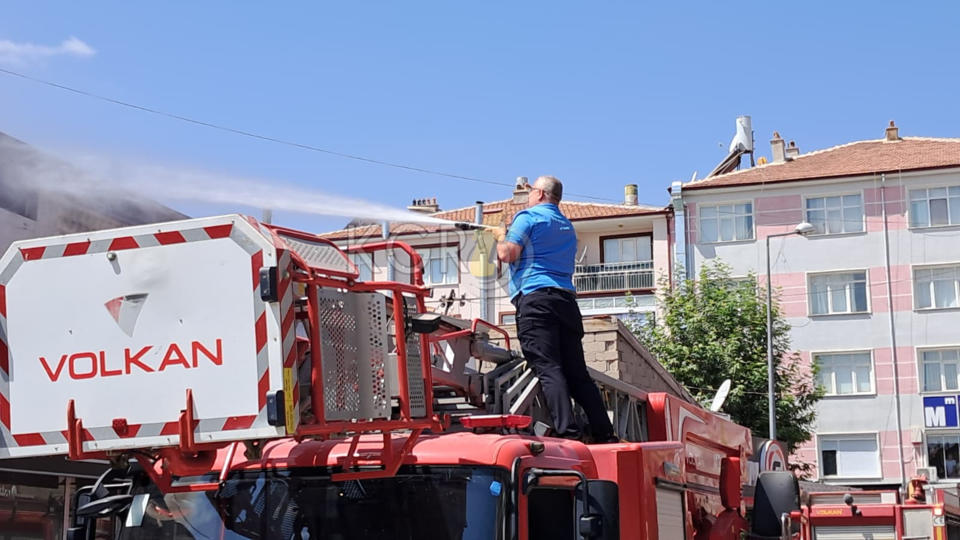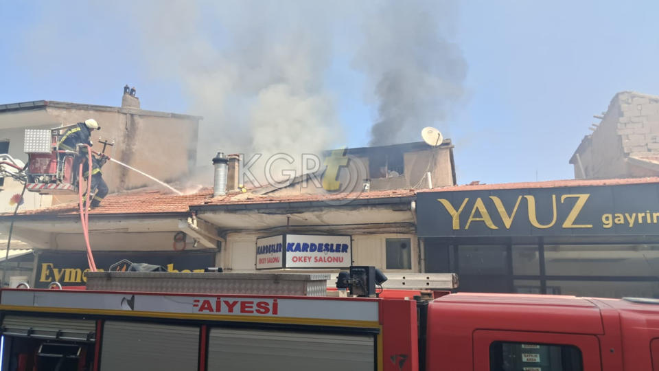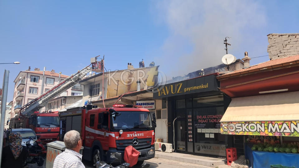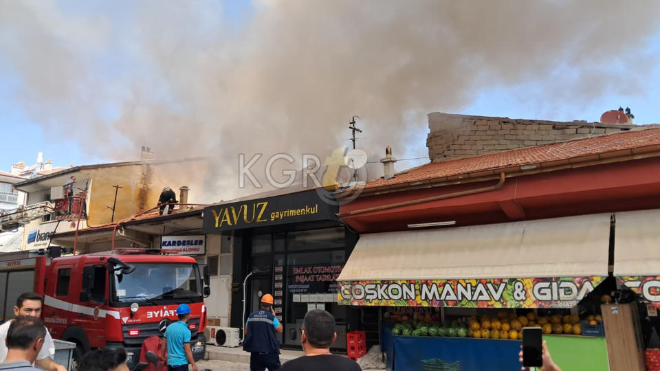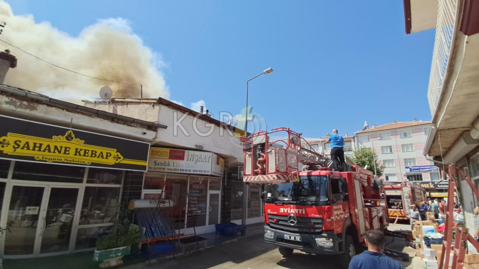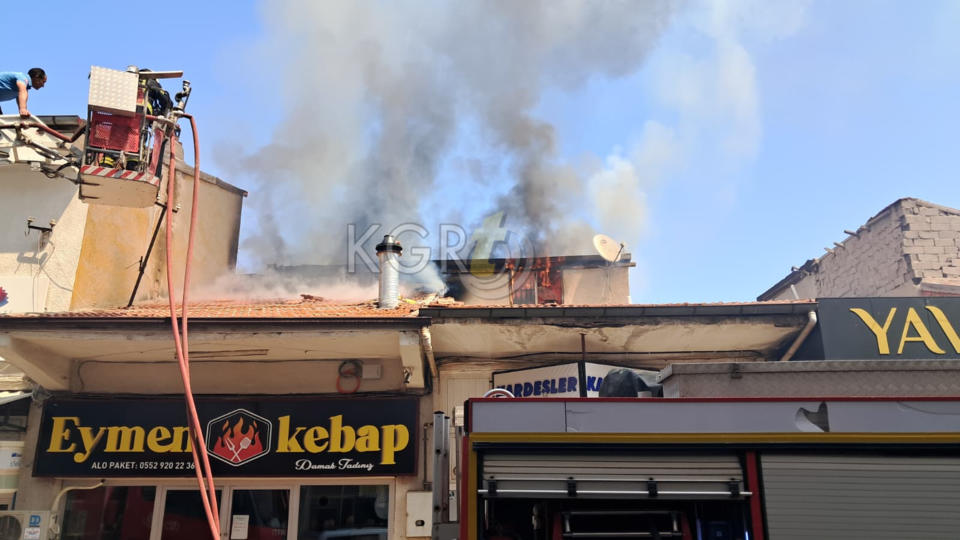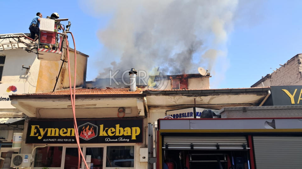 Edinilen bilgiye göre, iş yerinin çatısından yoğun dumanların yükseldiğini gören esnaf ve vatandaşlar durumu hemen 112 Acil Çağrı Merkezine bildirdi.