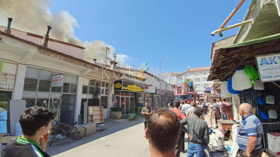 Bu sırada yangının büyüme ihtimaline karşı birçok esnaf dükkânlarını boşalttı.
