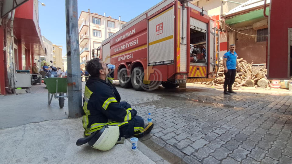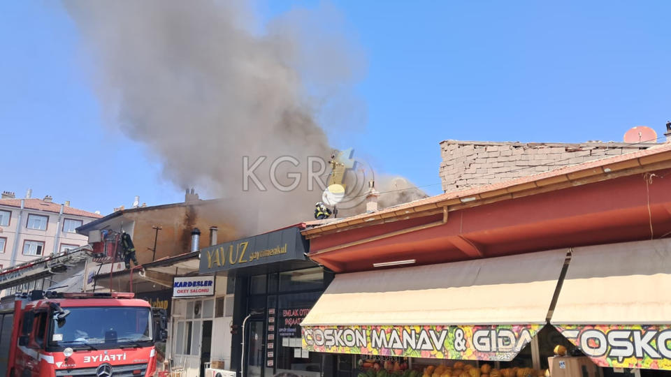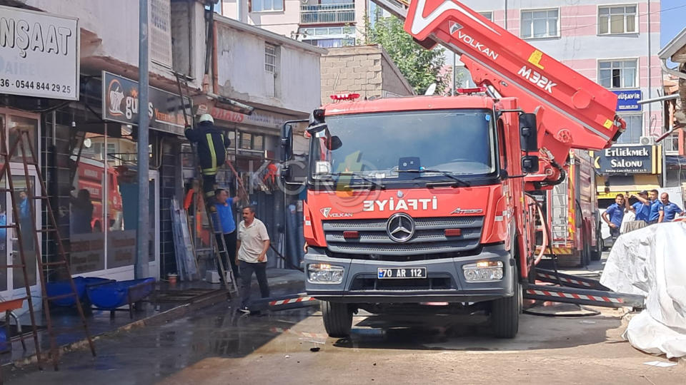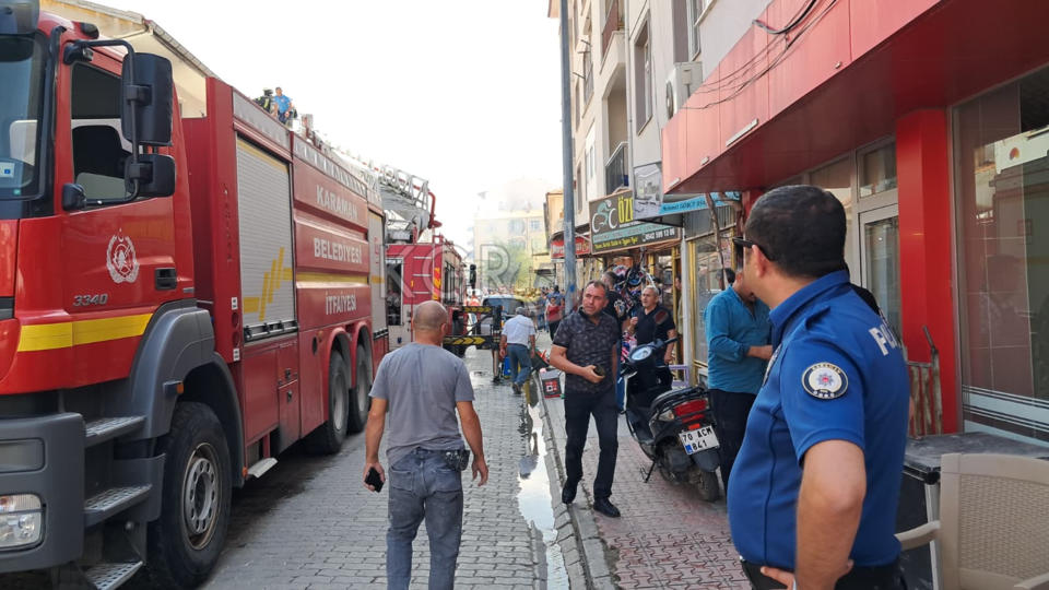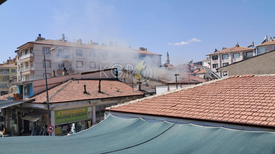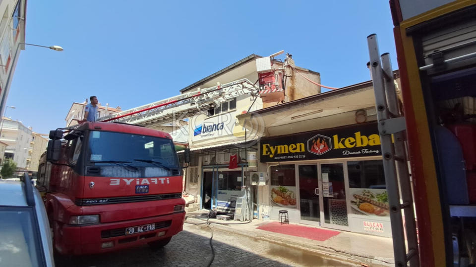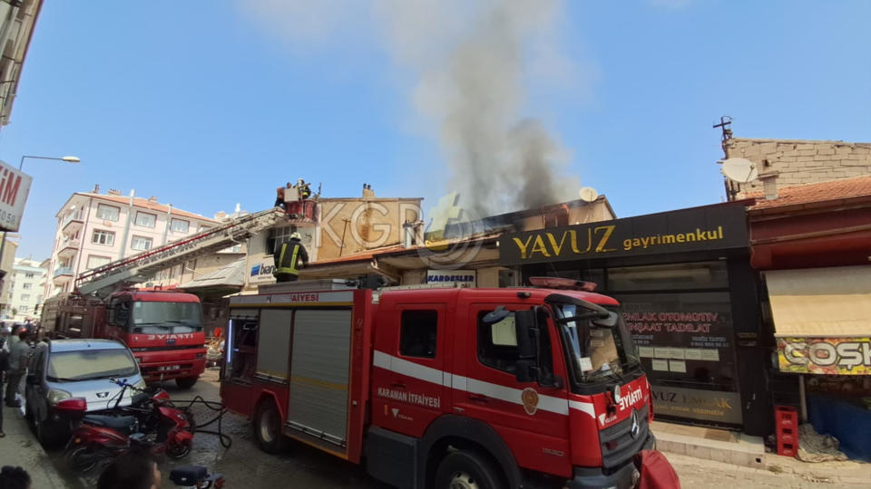 Karaman’da çarşı merkezinde bulunan bir iş yerinin çatısında çıkan yangın paniğe neden oldu.