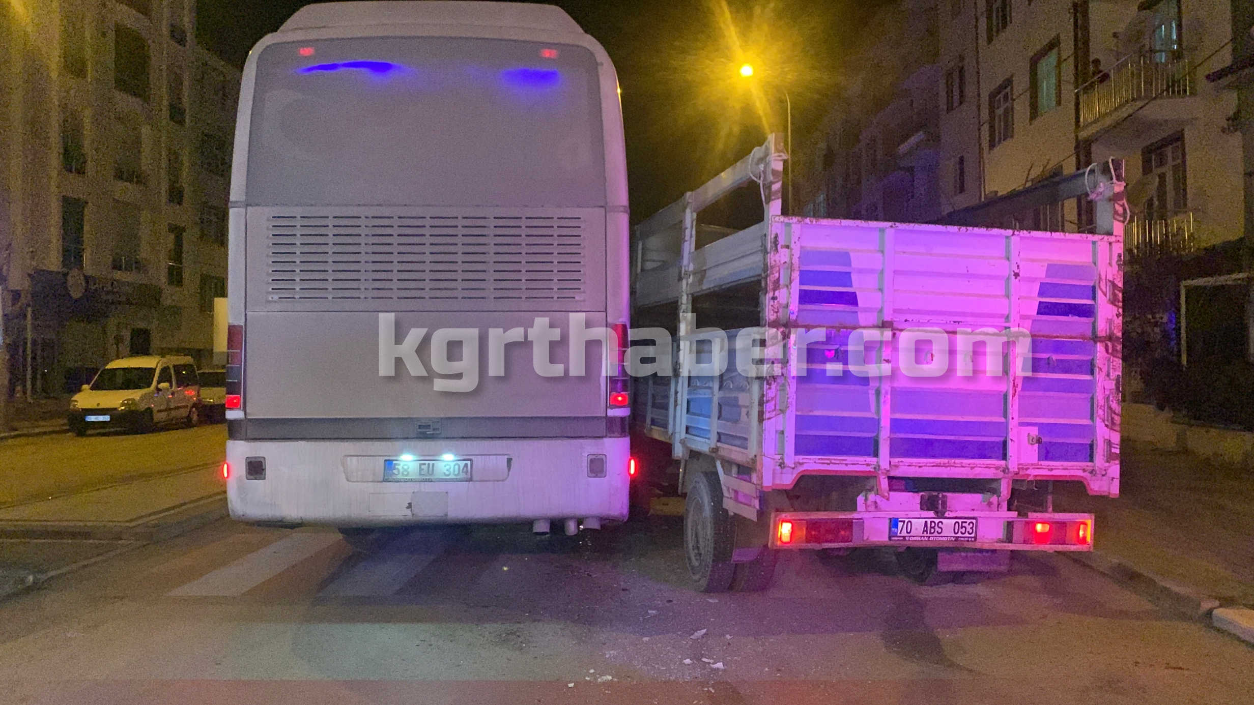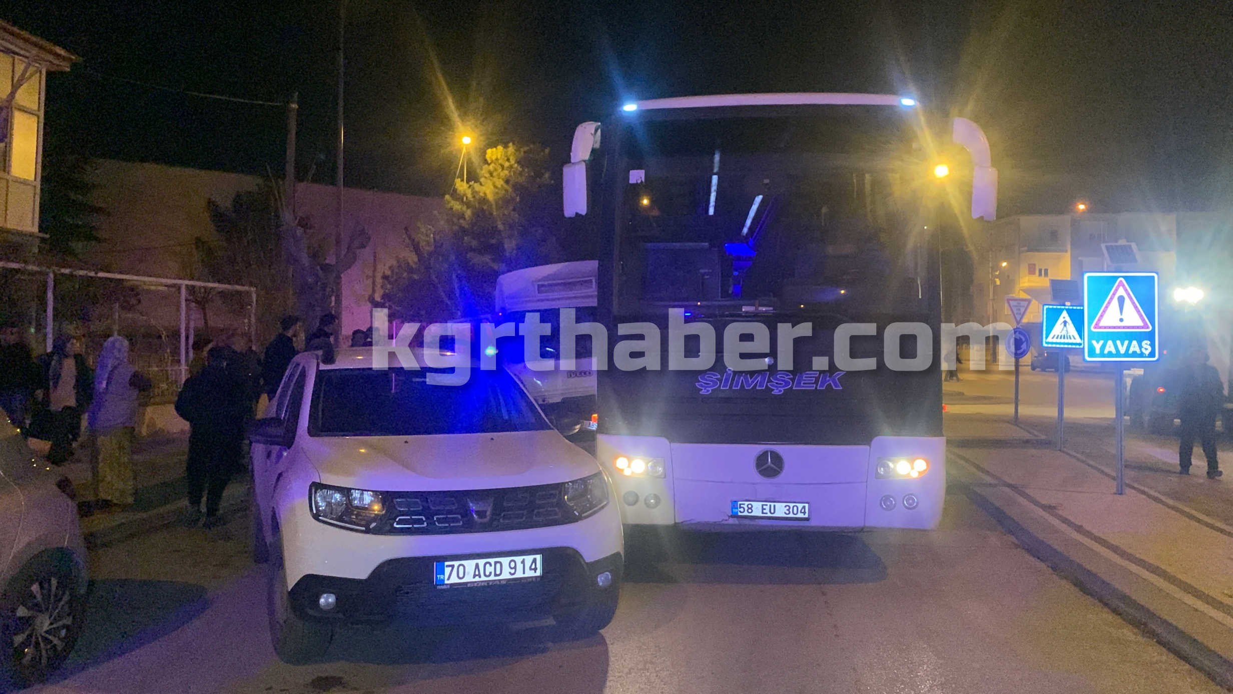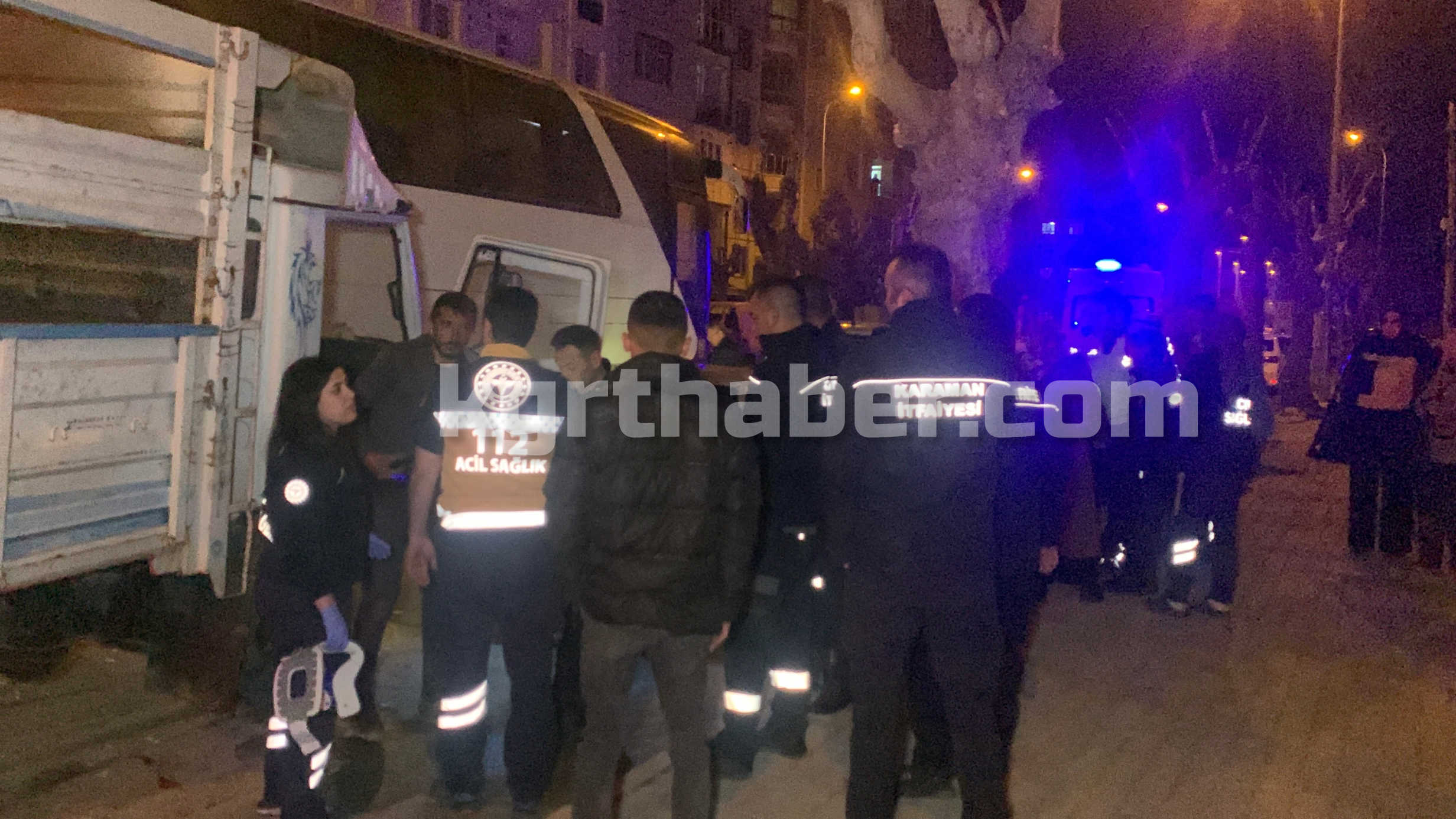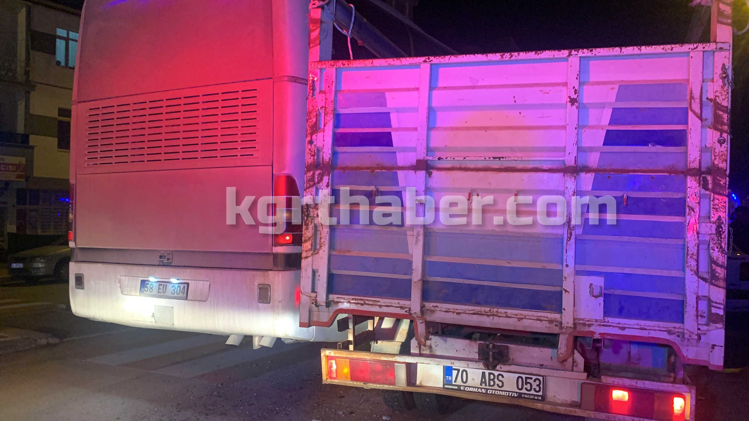 Kaza, akşam saatlerinde Nefise Sultan Mahallesi Doktor Sadık Ahmet Caddesiüzerindeki kavşakta meydana geldi. Edinilen bilgiye göre, İ.A. idaresindeki 70 ABS 053 plakalı kamyon kontrolden çıkarak T.A. idaresindeki 58 EU 304 plakalı otobüse çarptı. Çarpışmanın etkisiyle savrulan kamyon park halindeki 2 otomobile çarparak durabildi. Kazada kamyon sürücüsü T.A. ve park halindeki 26 KV 094 plakalı otomobildeki 11 yaşındaki M.A. yaralandı. İhbar üzerine olay yerine sağlık, itfaiye ve polis ekibi sevk edildi. Kazada yaralananlar ambulansla Karaman Eğitim ve Araştırma Hastanesi’ne kaldırılarak tedavi altına alındı. Kazaya karışan otobüs sürücüsü T.A., “Kamyon ana yoldan geldi ve durmadan otobüse çarptı, sonra da park halindeki 2 araca çarptı” diyerek kaza anını anlattı. Kazaya karışan kamyon çekici ile yolan kaldırılırken kazayla ilgili tahkikat başlatıldı.